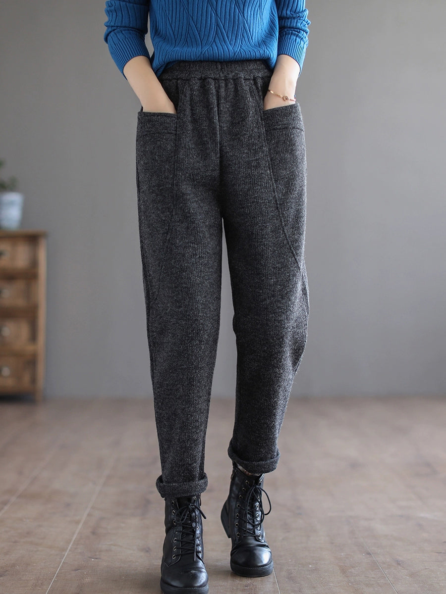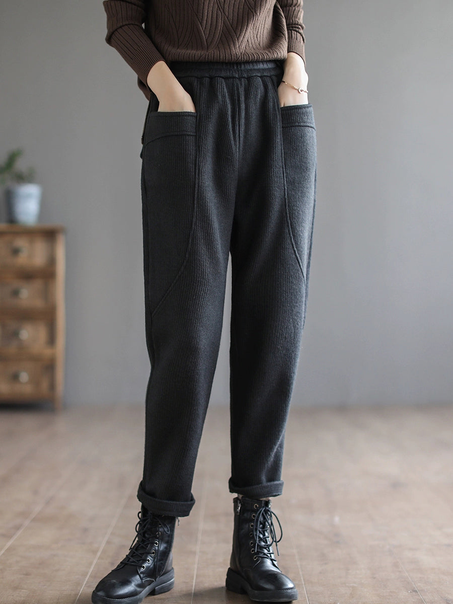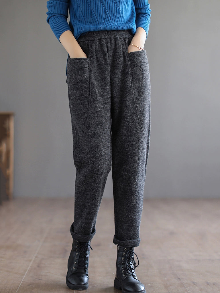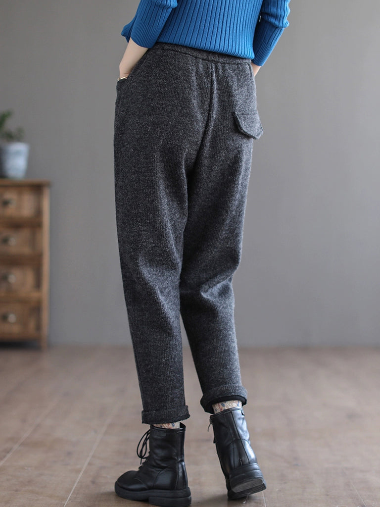 Dames Winter Casual Pure Color Fleece-gevoerde Harembroek