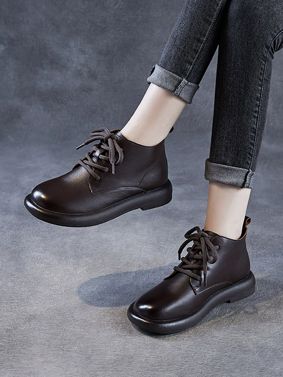 Vintage dames enkellaarsjes van echt leer voor de winter