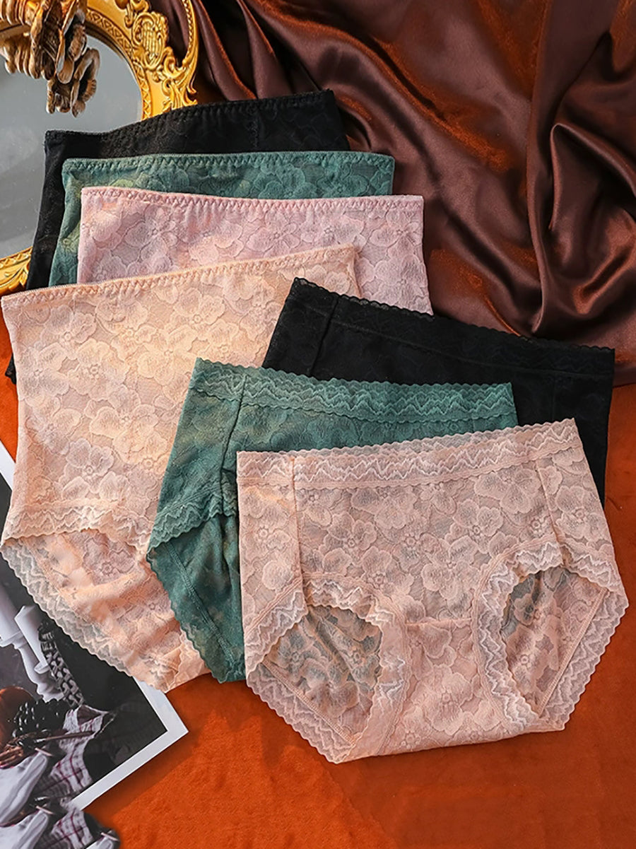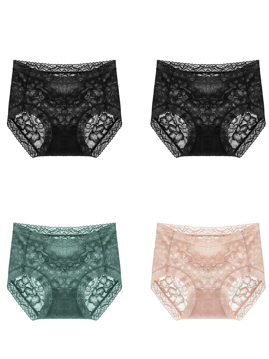 4 deler kvinnelige kunstneriske blomsterblonderundertøy med høy midje
