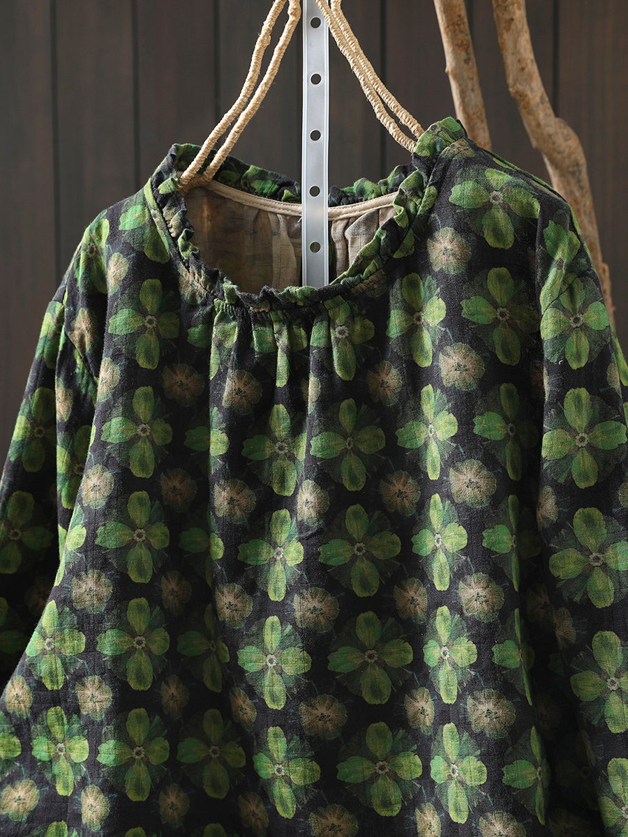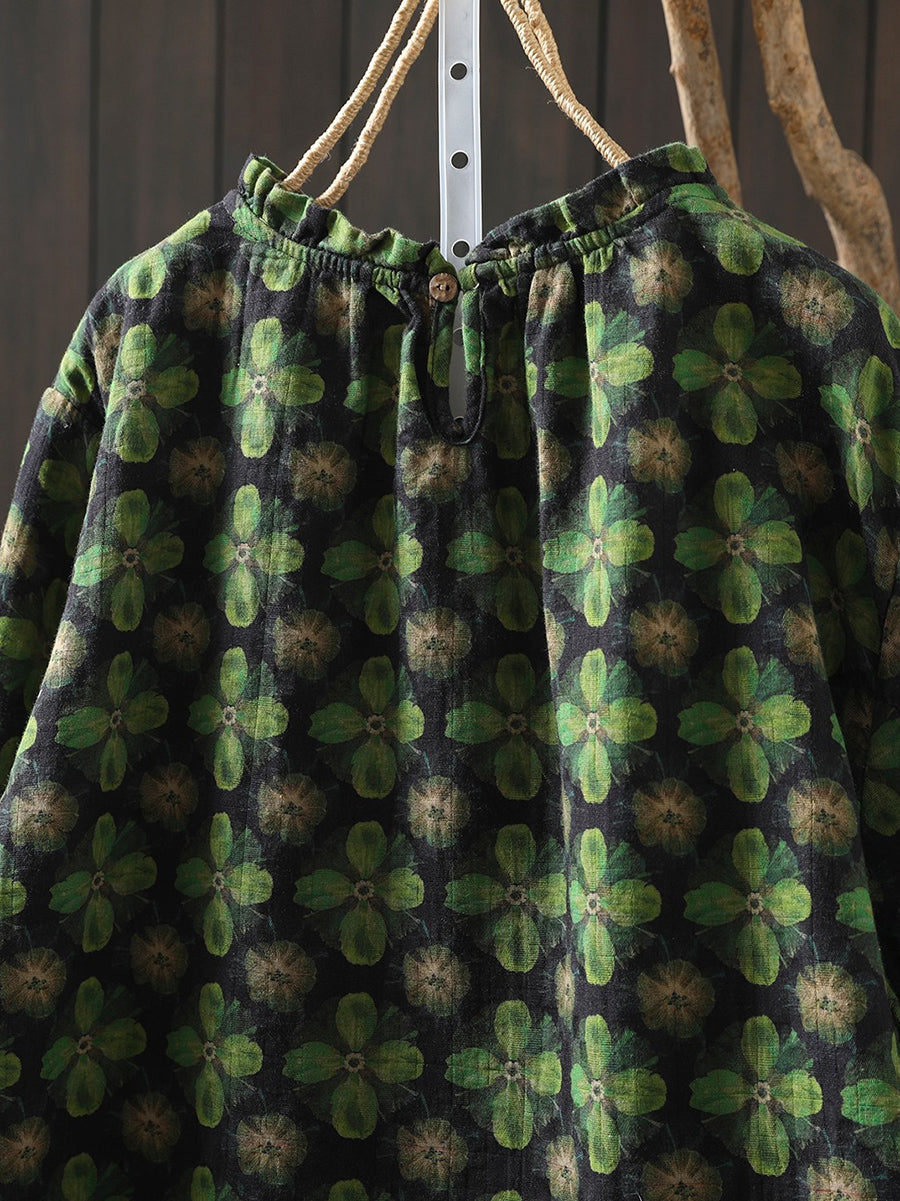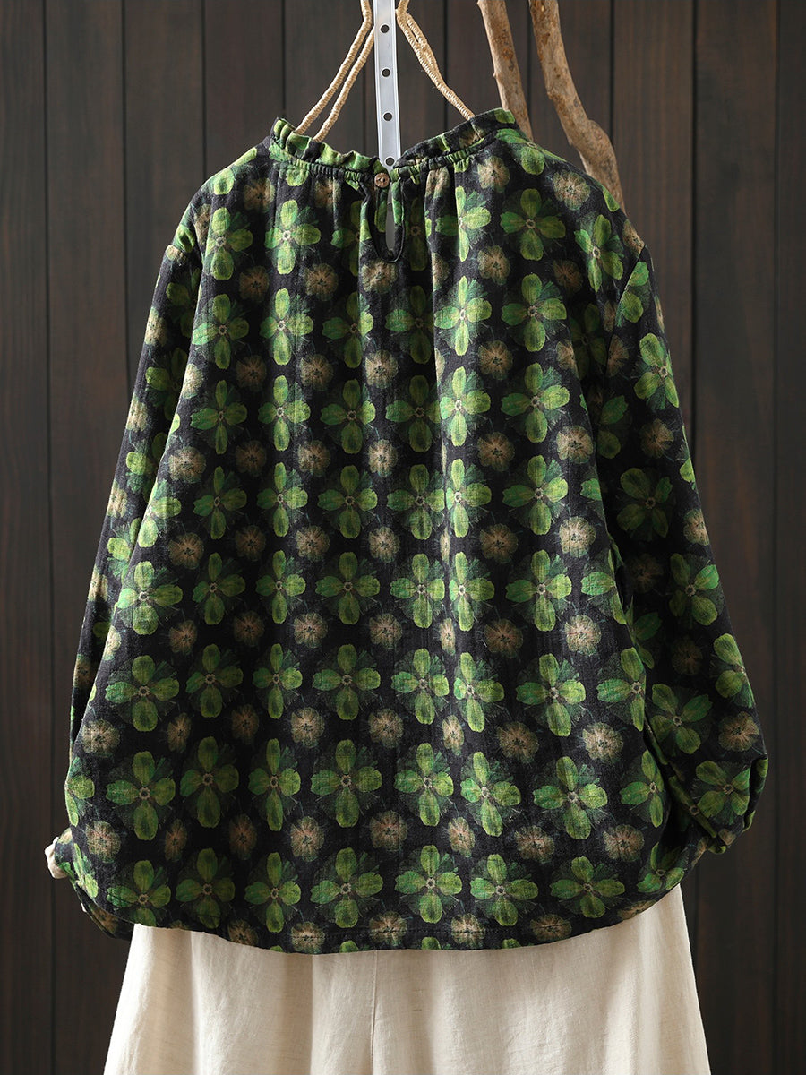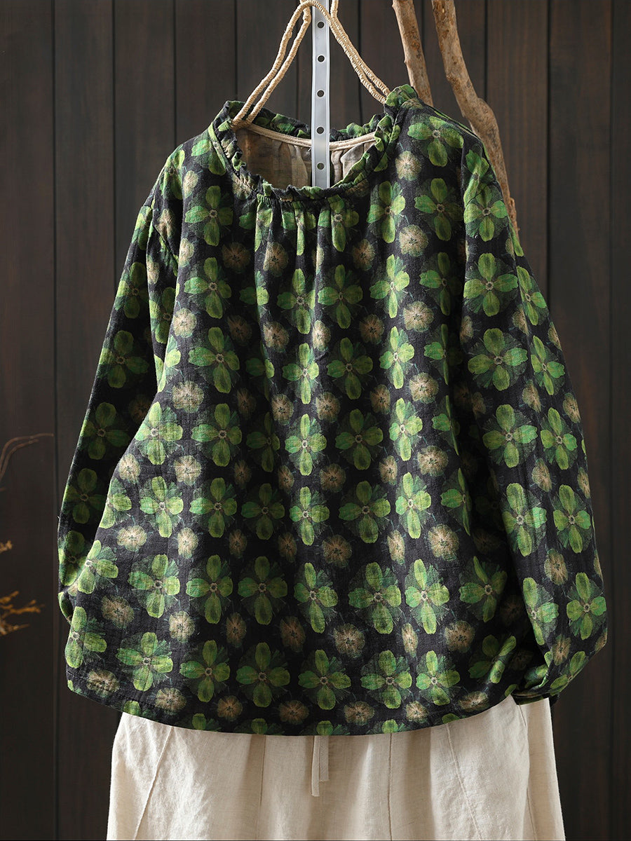 Dame vårbluse med kunstnerisk blomstermotiv