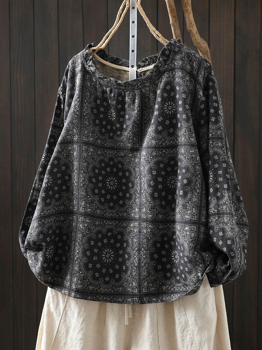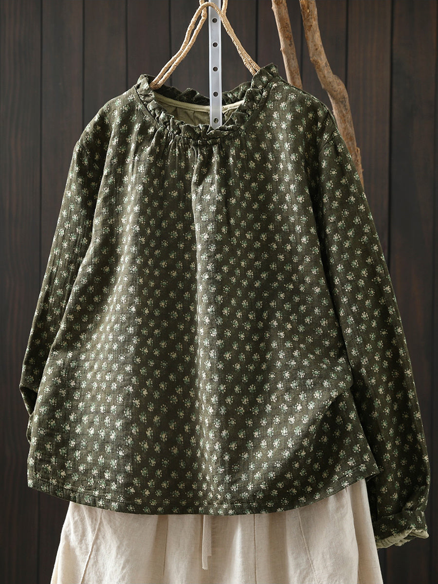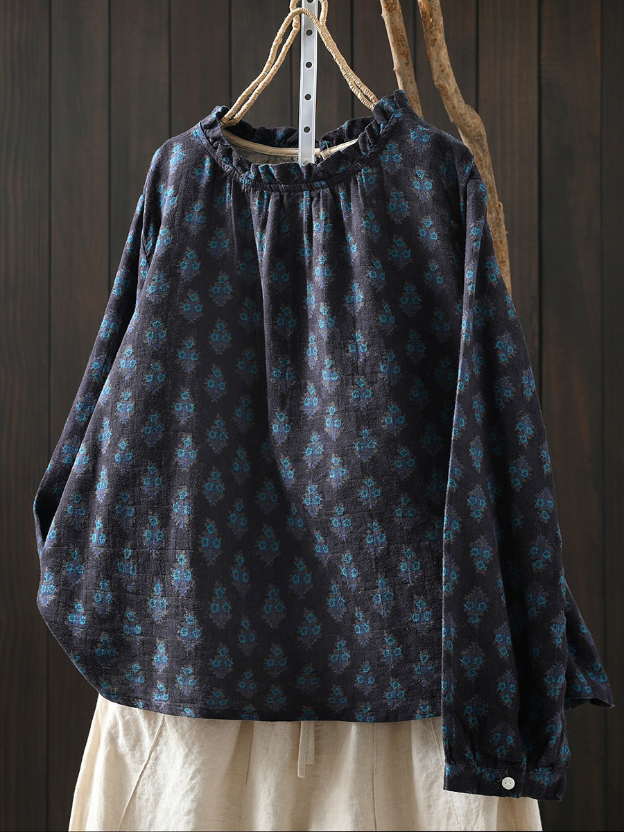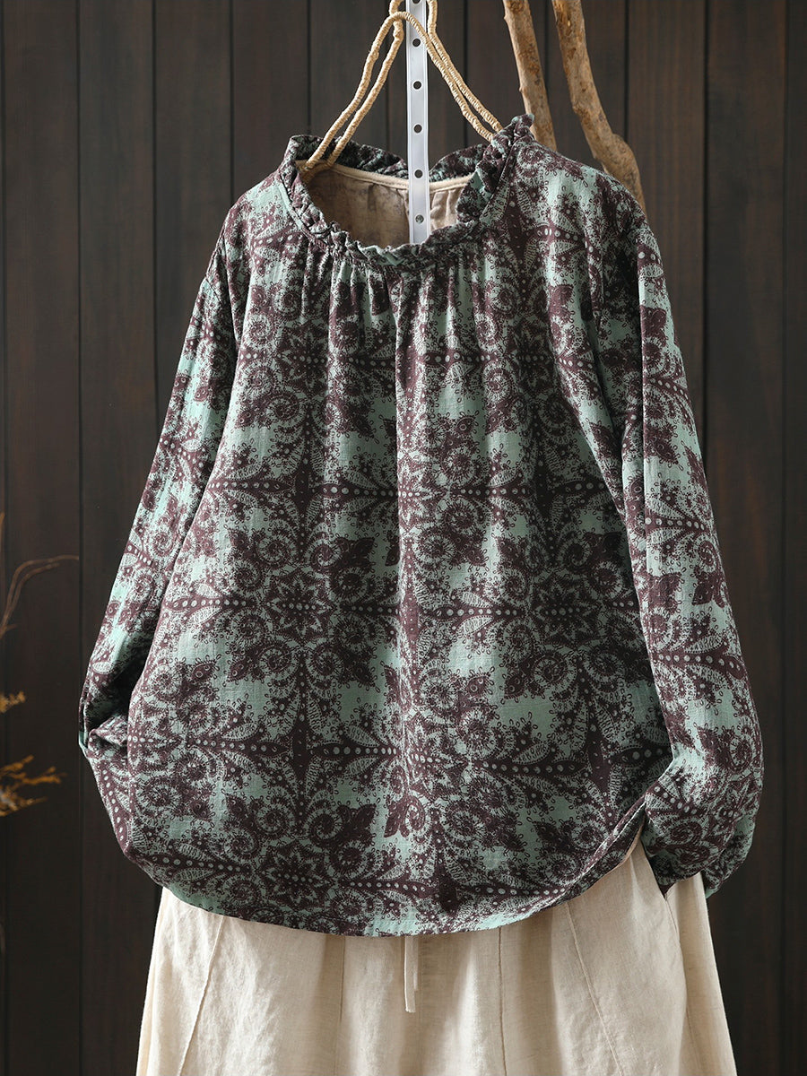 Dame vårbluse med kunstnerisk blomstermotiv