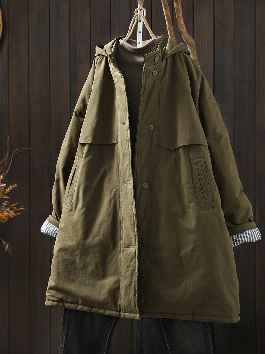 Dame vinter retro ren farge hettejakke med polstret hette