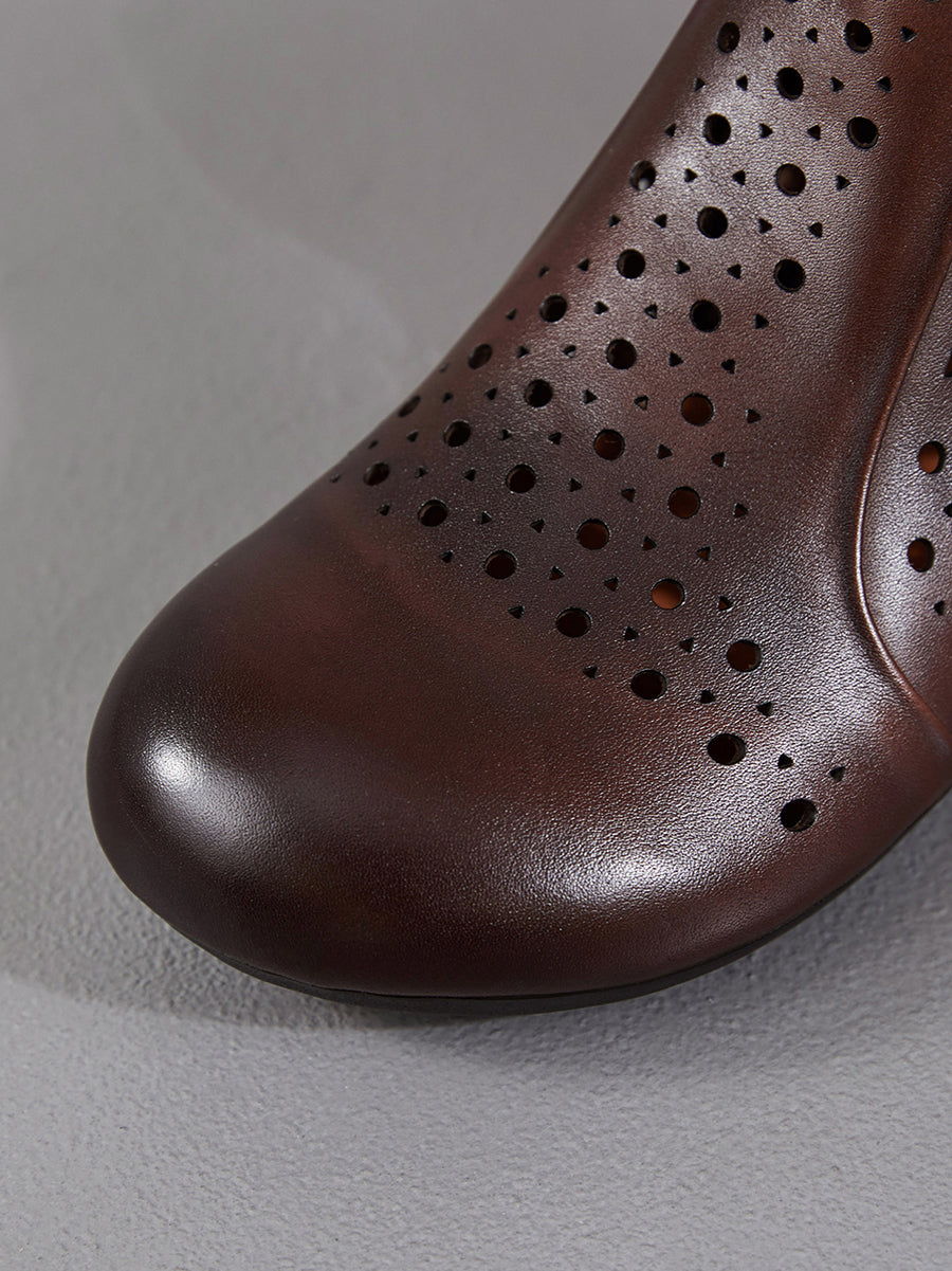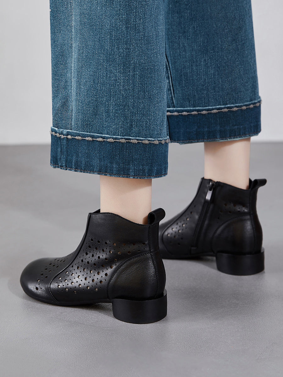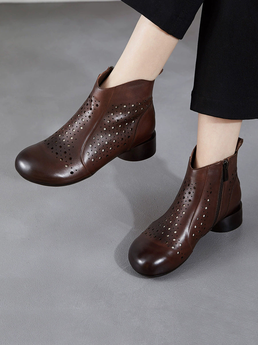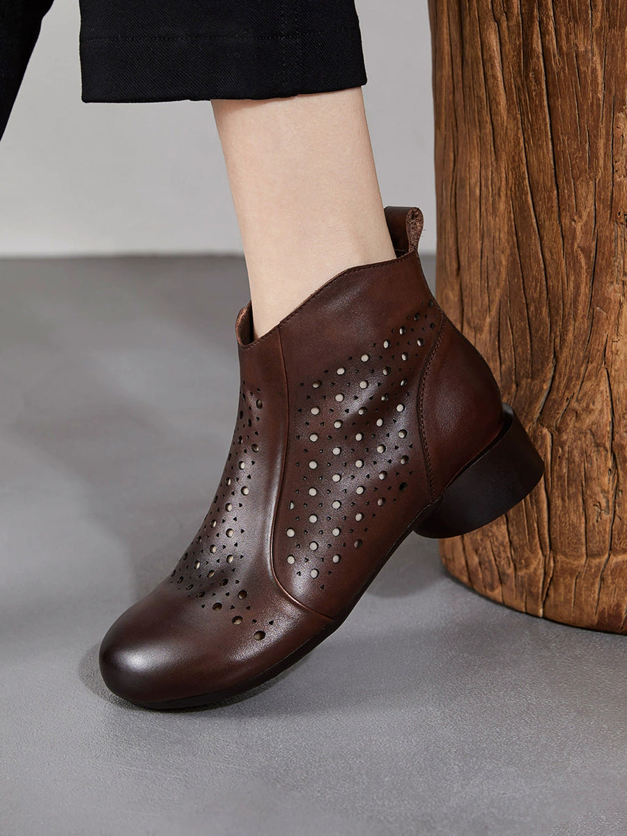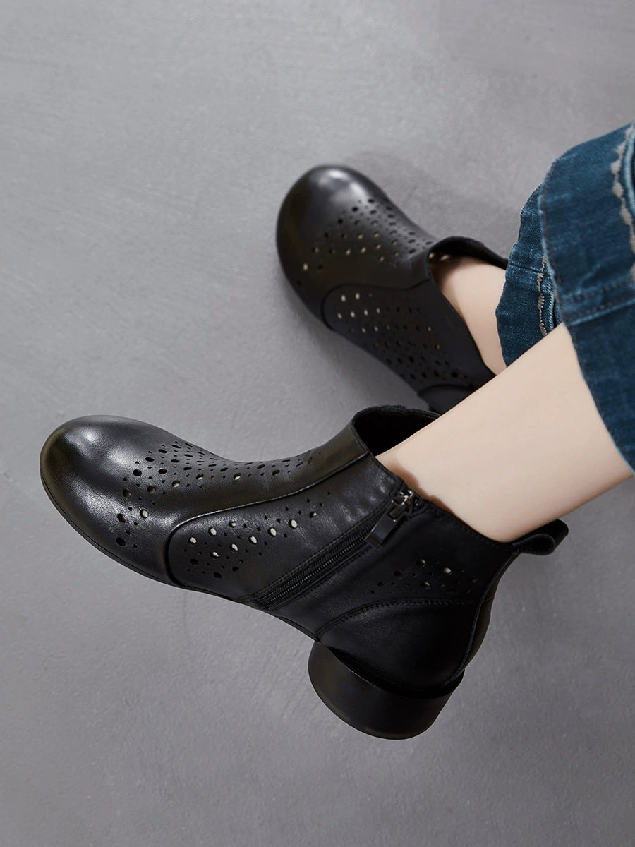 Damestøvler med lav hæl og hule utsmykkede skinn