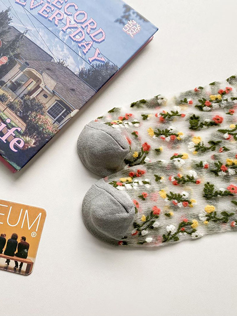 5 Par Dame Sommerblomst Jacquard Tynne Sokker