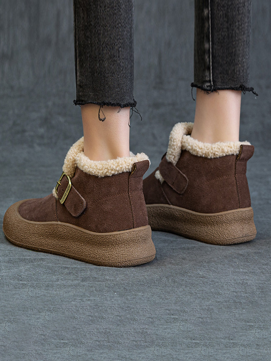 Dame vinterstøvletter med fleecefor og ekte skinn
