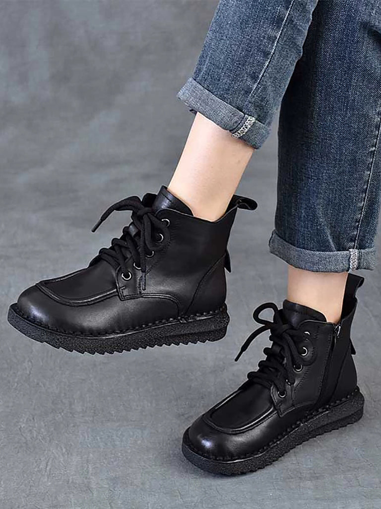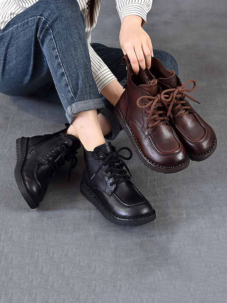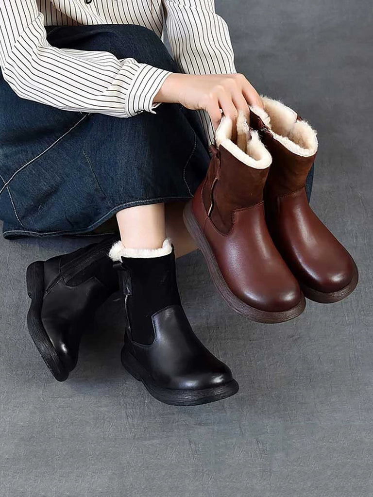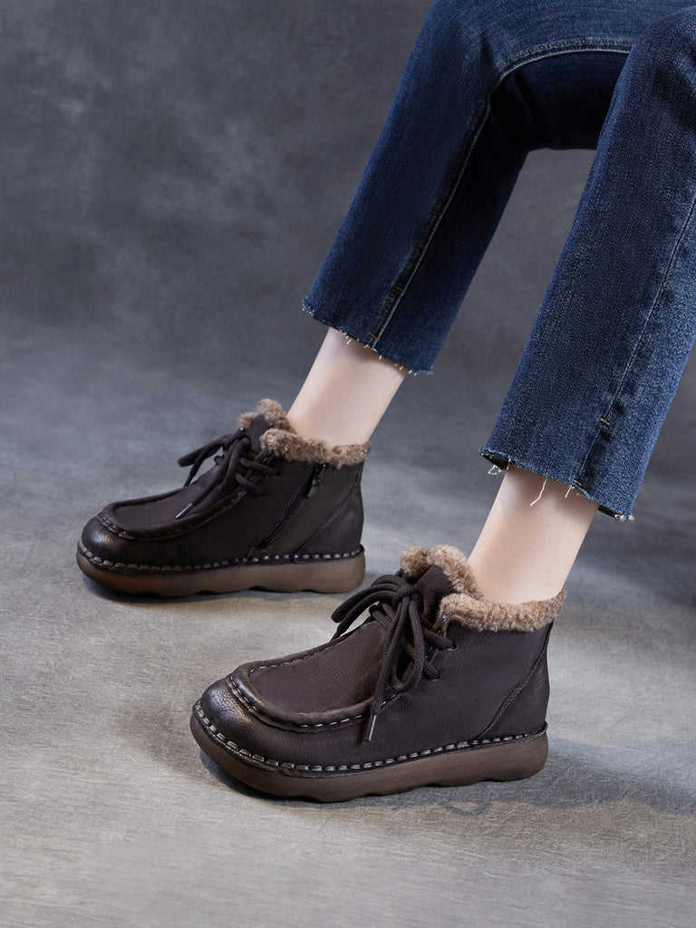 Dame Vinter Vintage Skinn Skjøtede Ankelstøvler