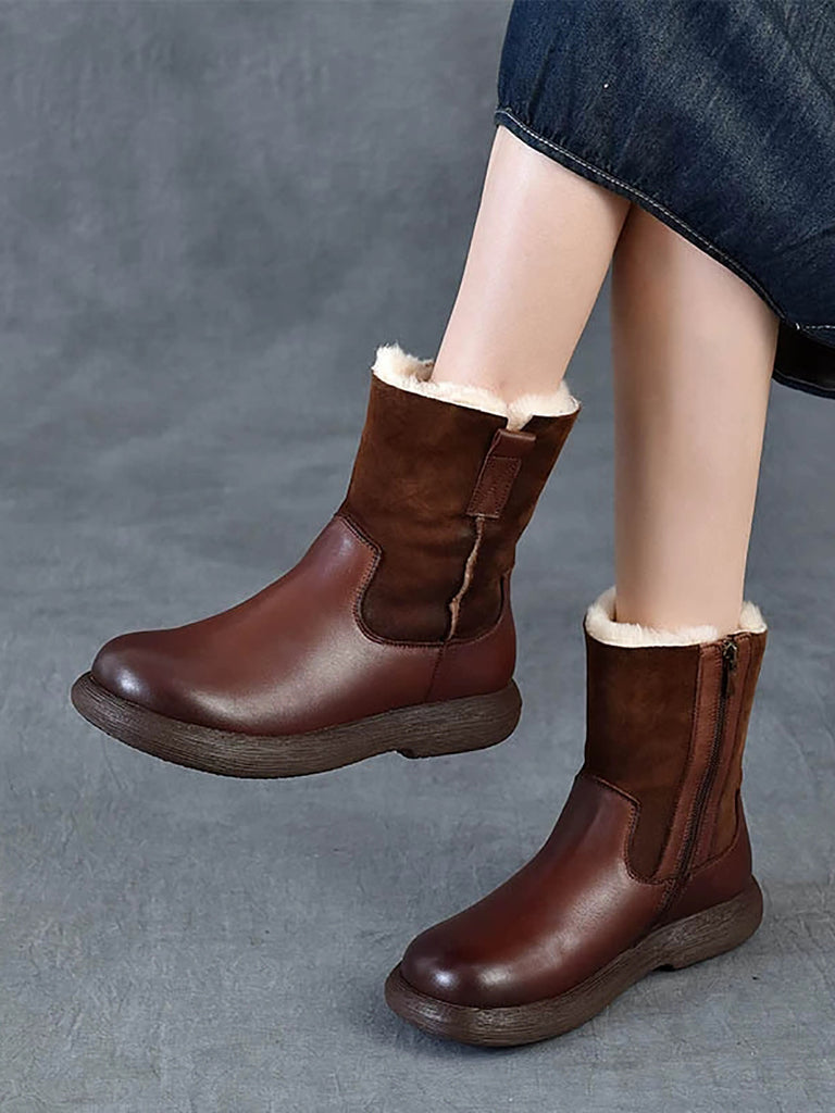 Dame Vinter Vintage Skinn Skjøtet Fleeceforet Støvler