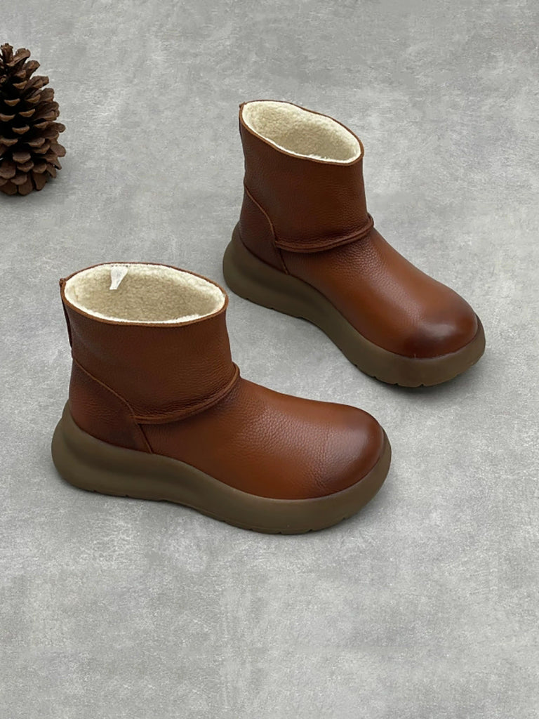Dame vintage ekte skinn fleeceforede platåstøvler