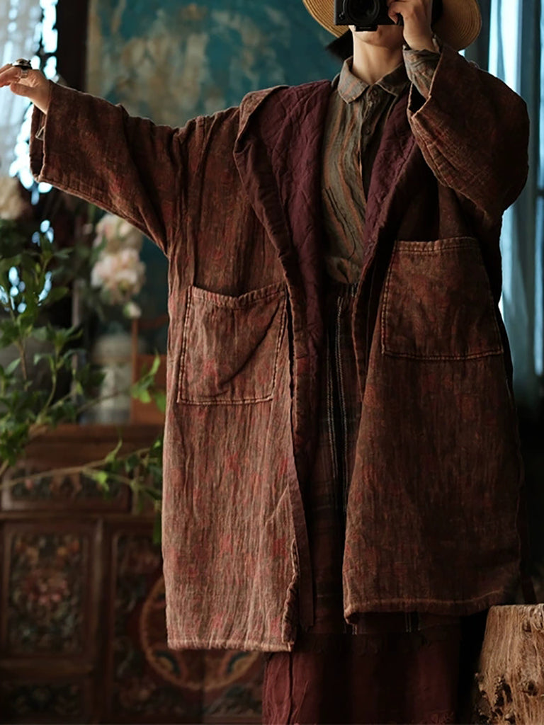 Dame Retro Høst Gitter O-hals 100% Lin Polstret Kåpe