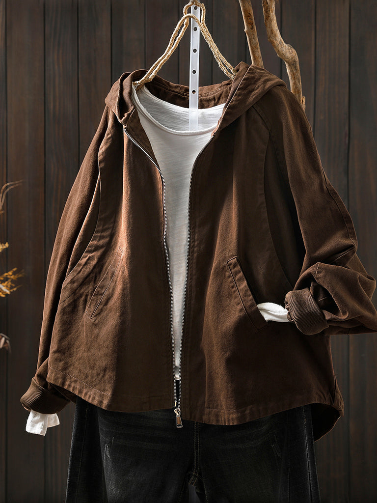 Damehøst Casual Ren Farge Hettegenser i Bomull