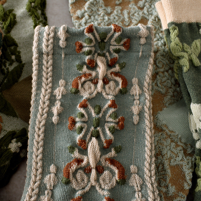 5 Par Dame Vår Vintage Plant Jacquard Sokker