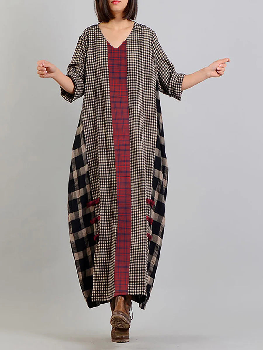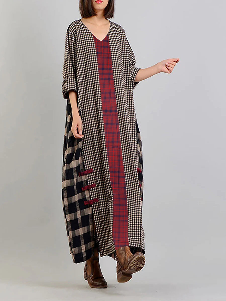 Pluss størrelse forskjellig farget rutete retro bomull linkjole