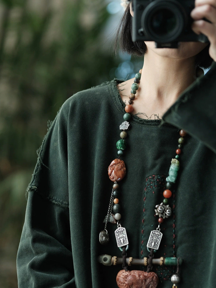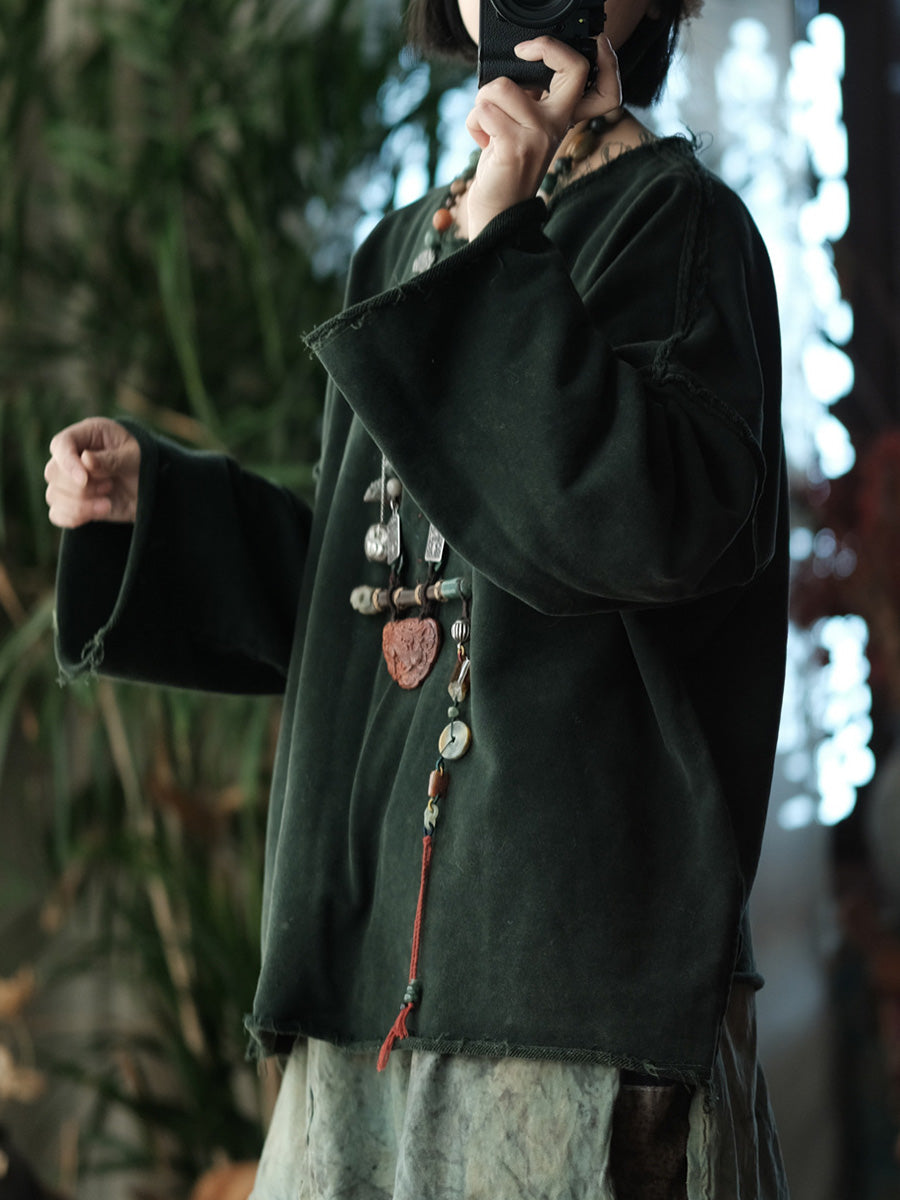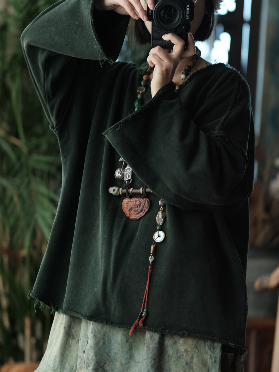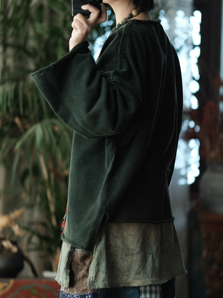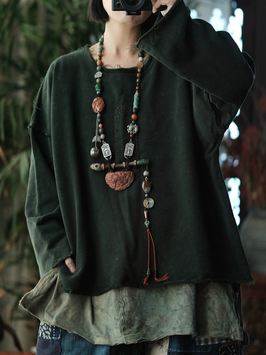 Retro vårbluse i ren farge med bomull og O-hals for kvinner