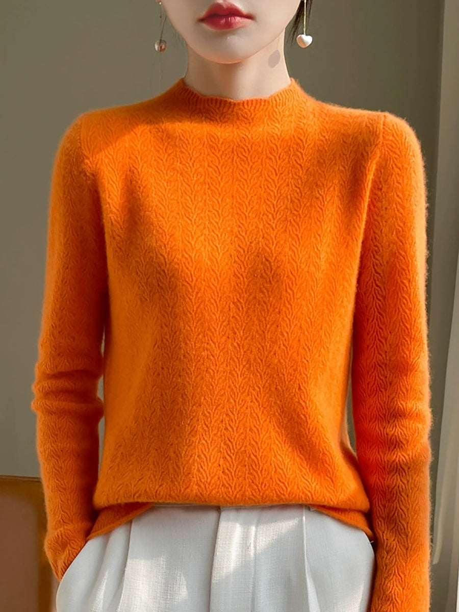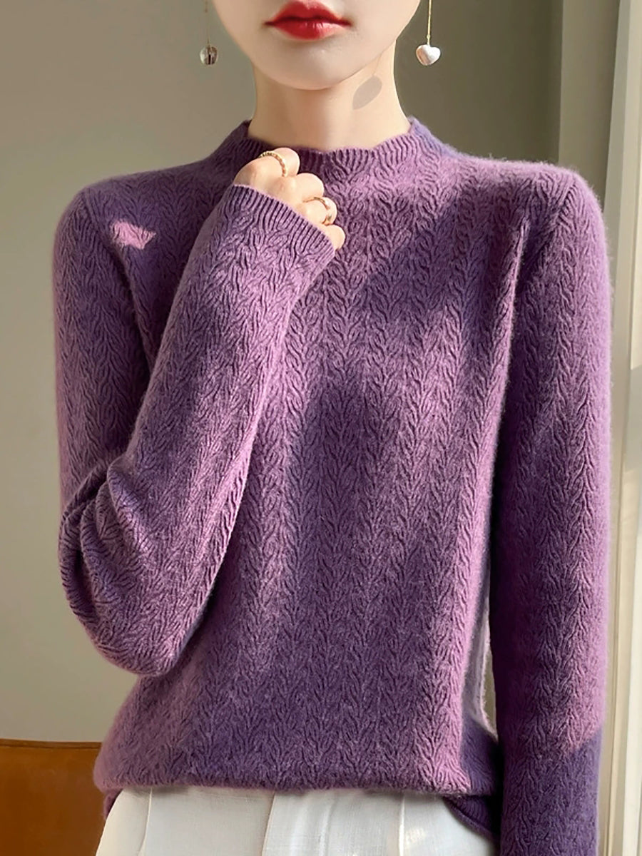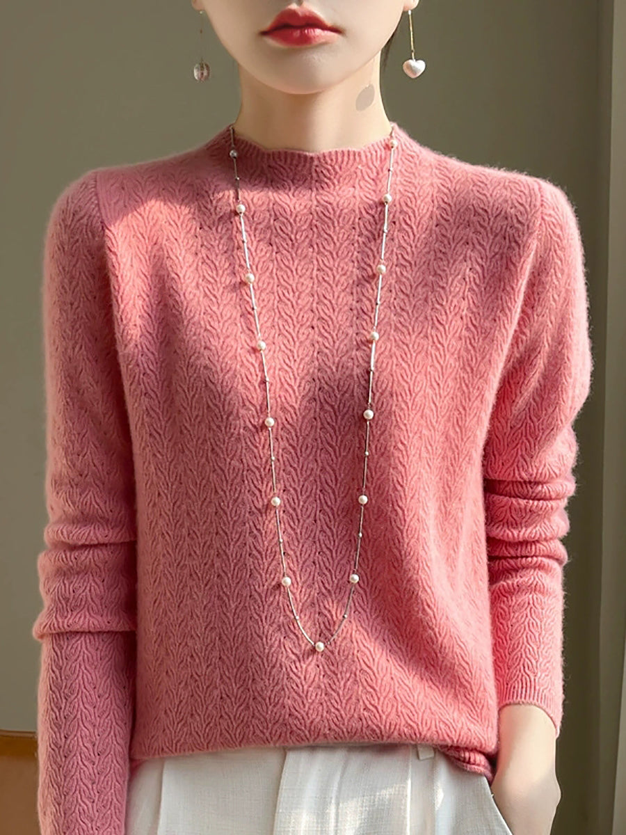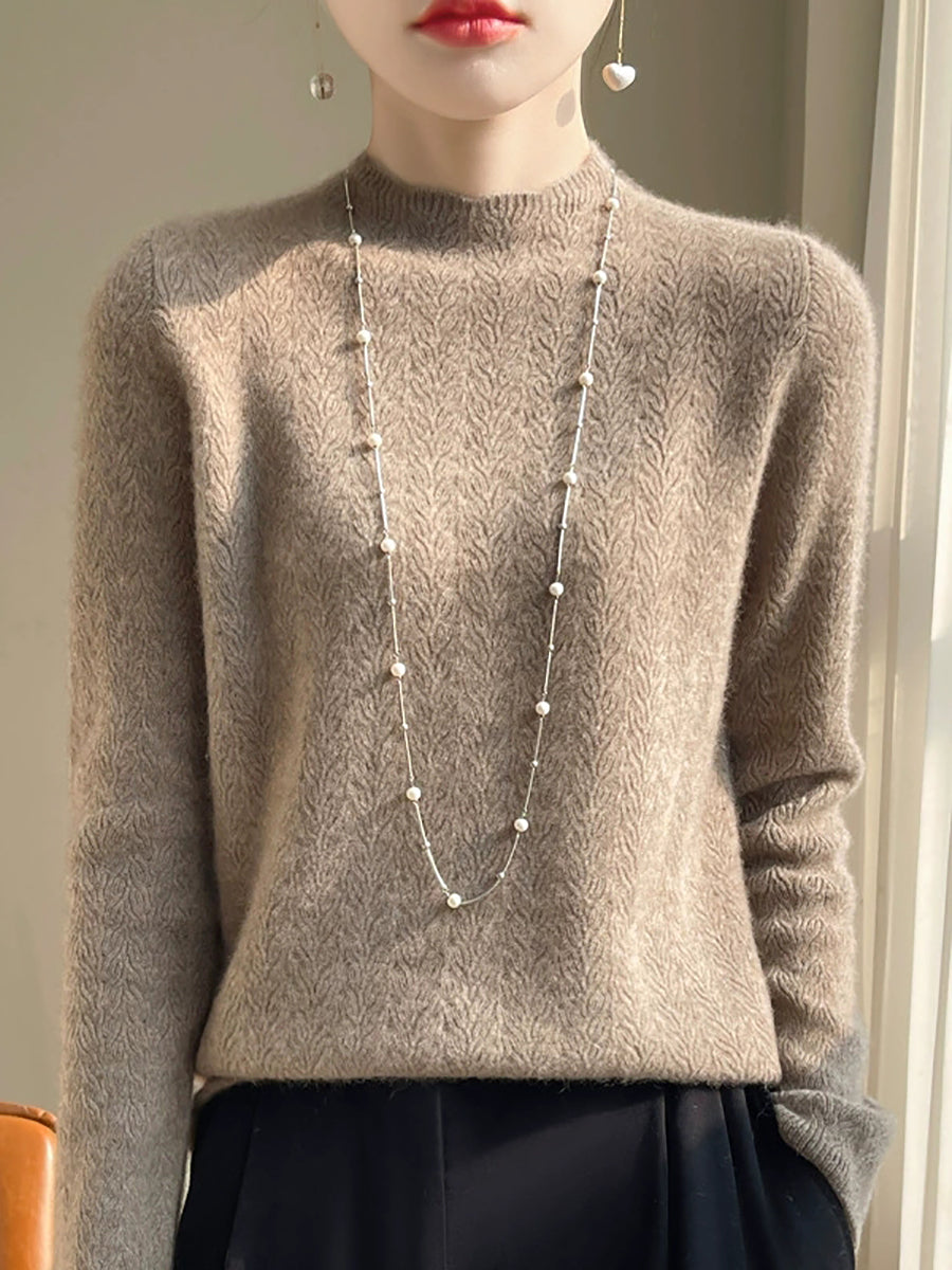 Kunstnerisk genser med ren farge og O-hals for kvinner