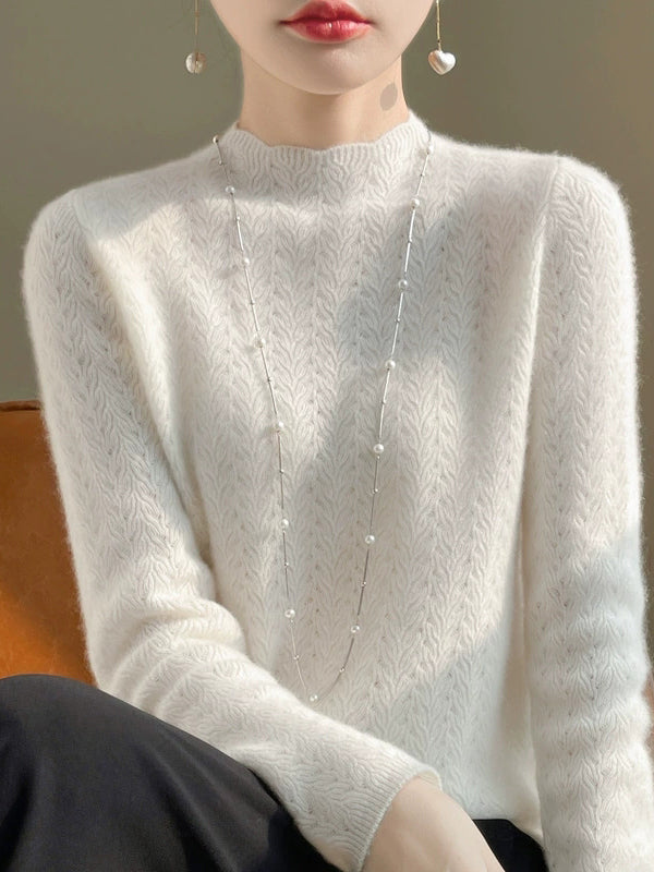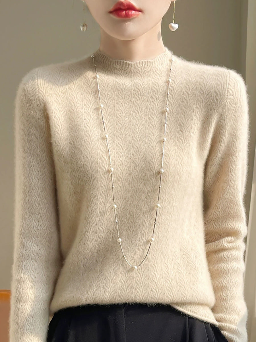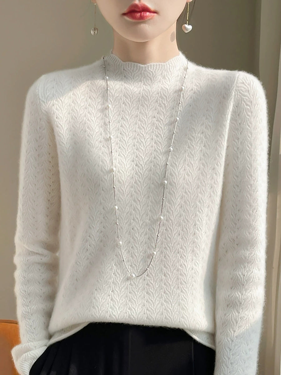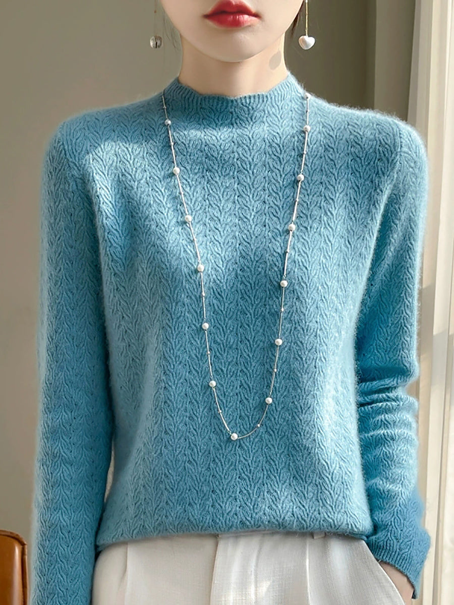 Kunstnerisk genser med ren farge og O-hals for kvinner