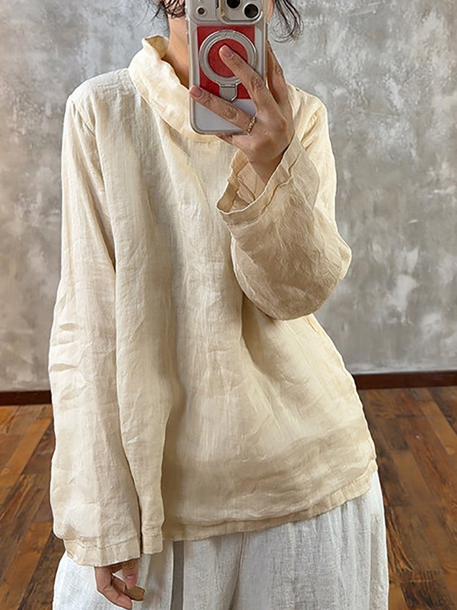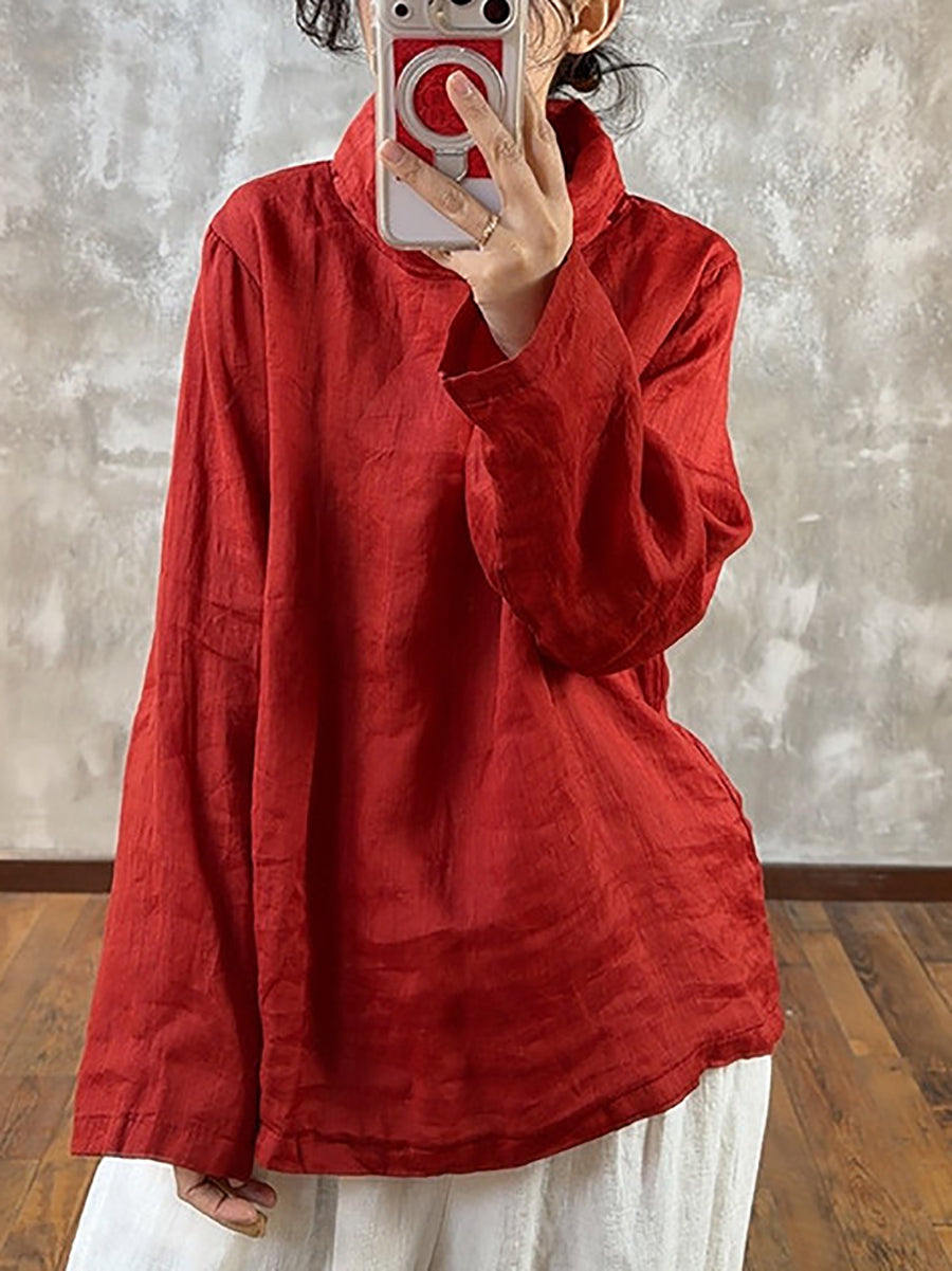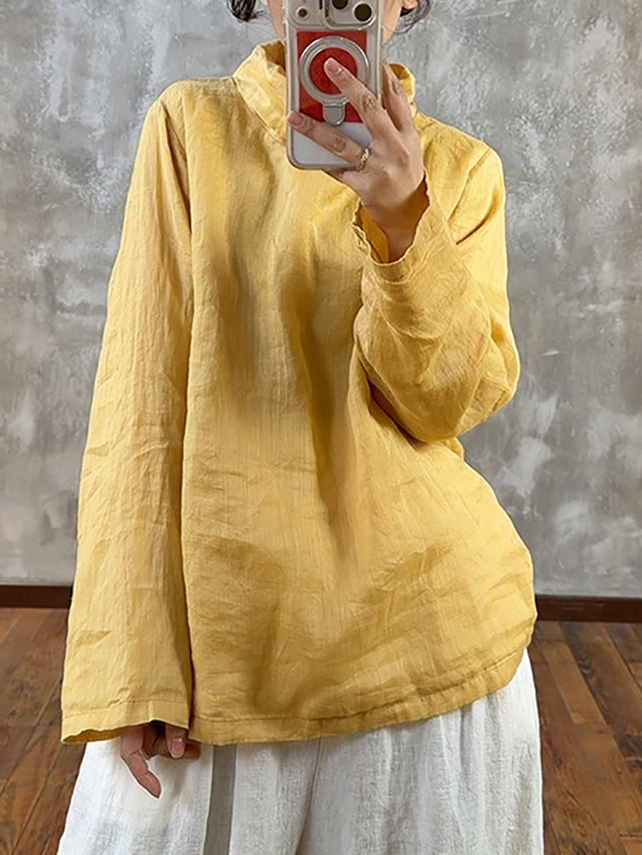 Kvinners vårbluse med rene farger og krage