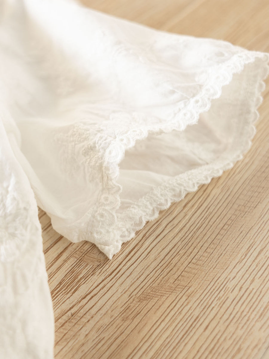 Damebluse med kunstnerisk broderi og O-hals i 100 % bomull