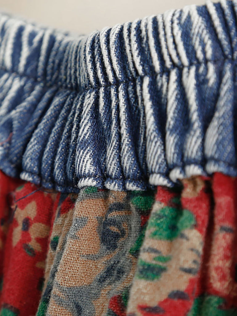 Plus Size Dame Sommer Vintage Floral Patch Skjøt Harem Bukser