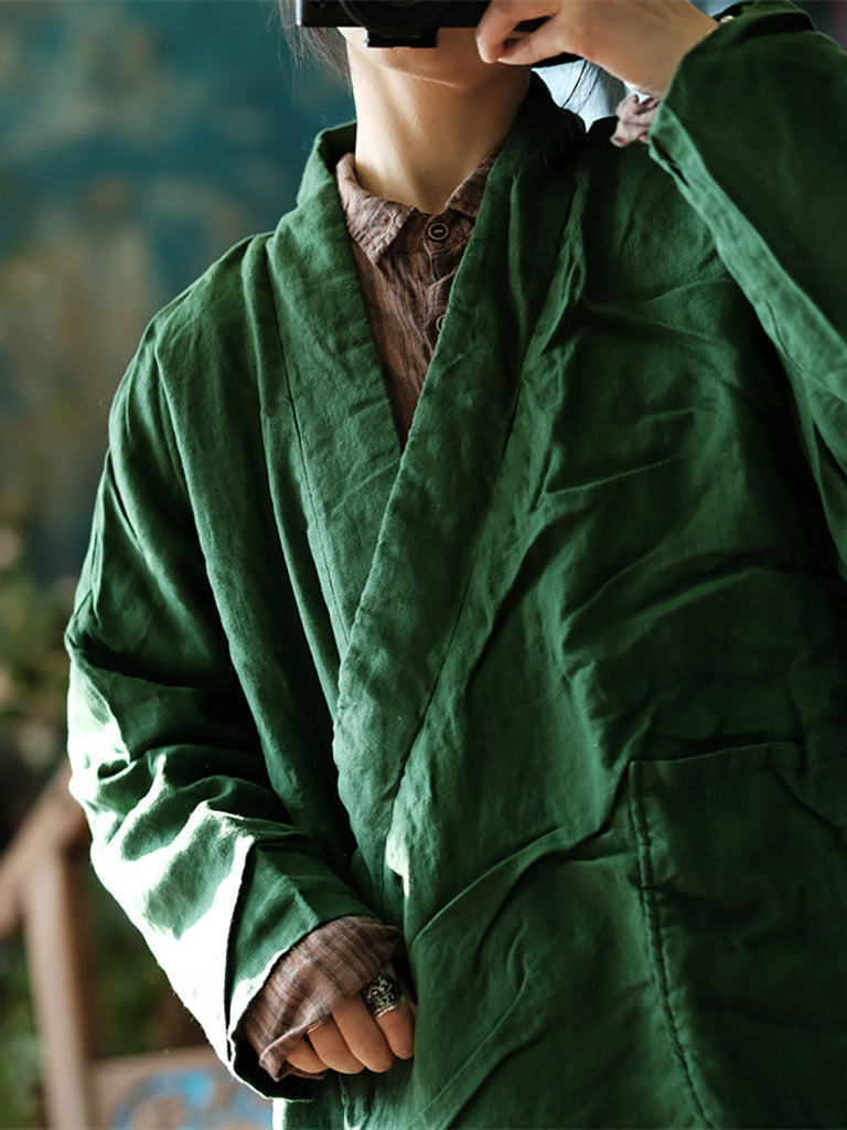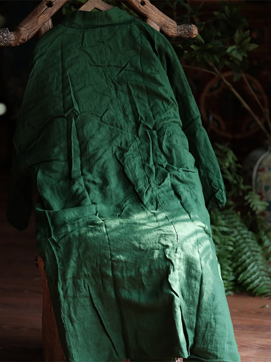 Kvinner Løs Vintage V-hals Lang Lin Coat