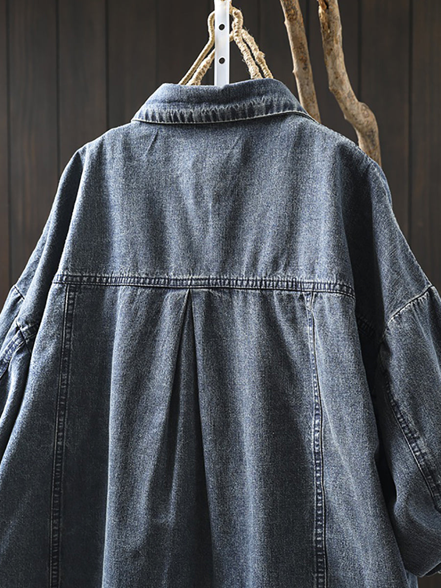 Plus Size Women Vintage Autumn Turn-down Collar Denim Shirt Coat