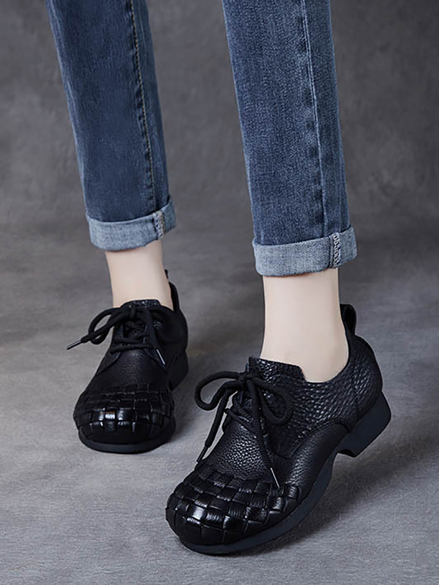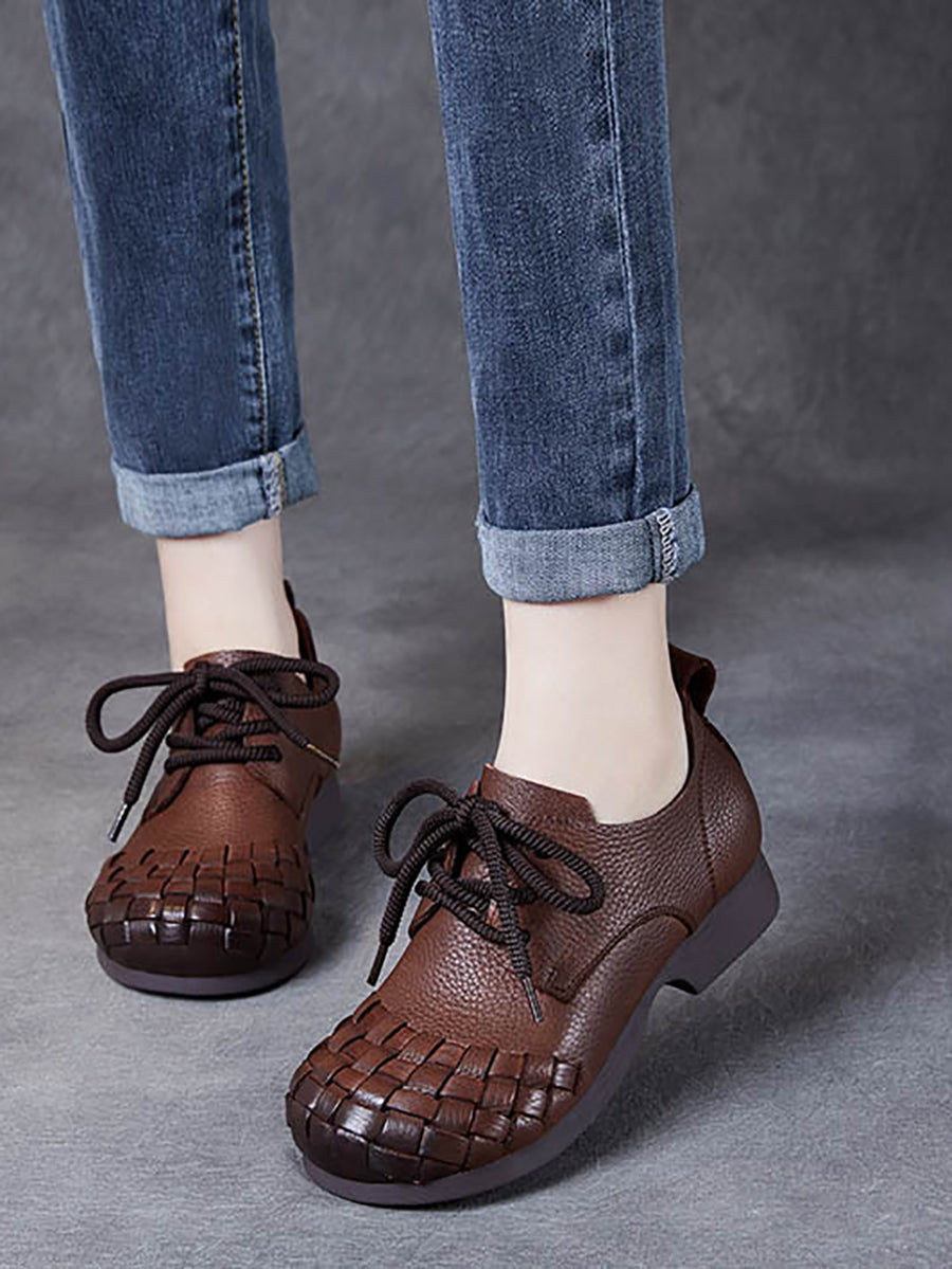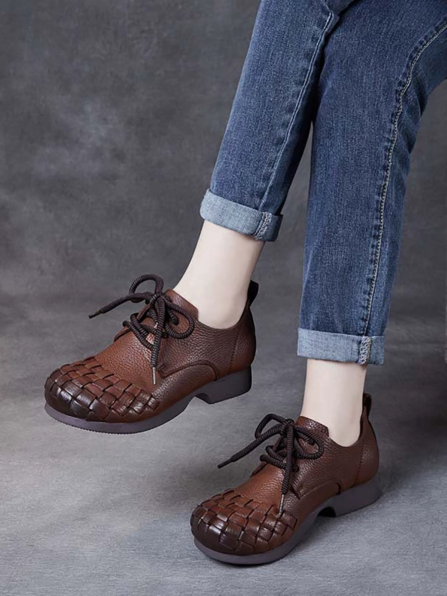 Damesko med lav hæl og mykt skinn i vintage-stil