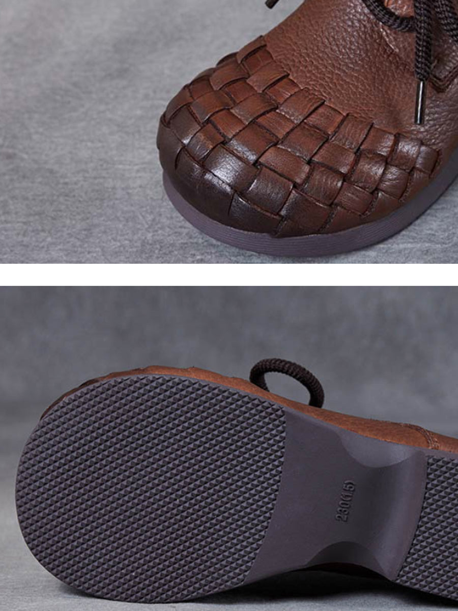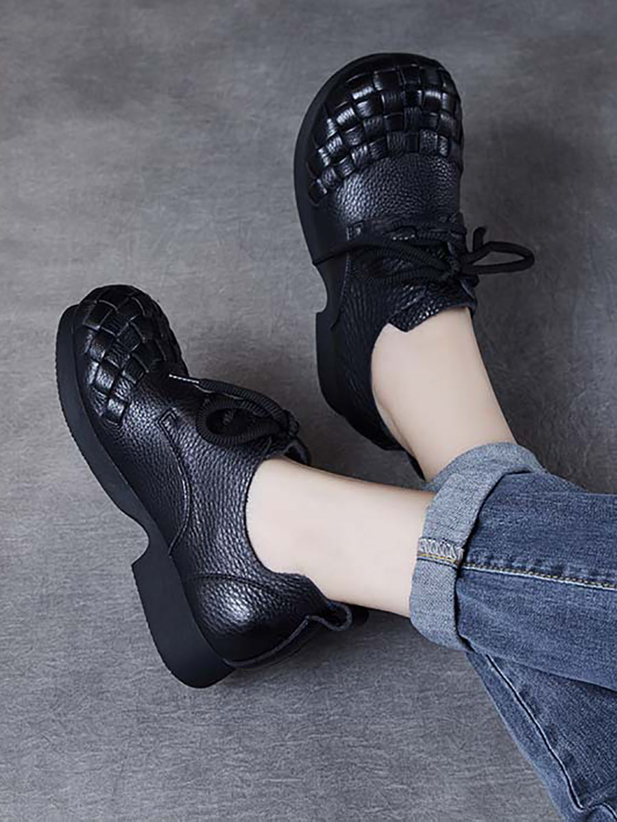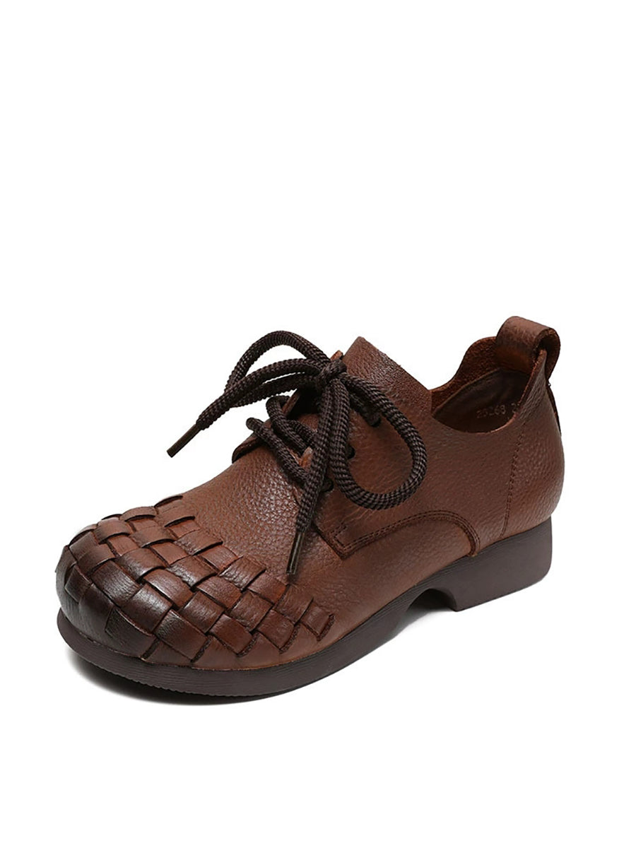 Damesko med lav hæl og mykt skinn i vintage-stil