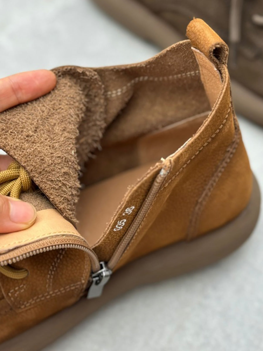 Kvinner vinter ekte skinnstropp Glidelås flate støvler