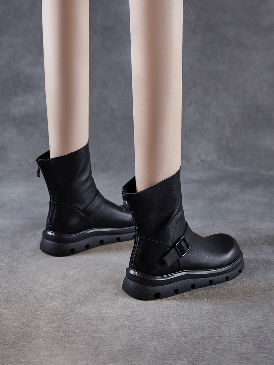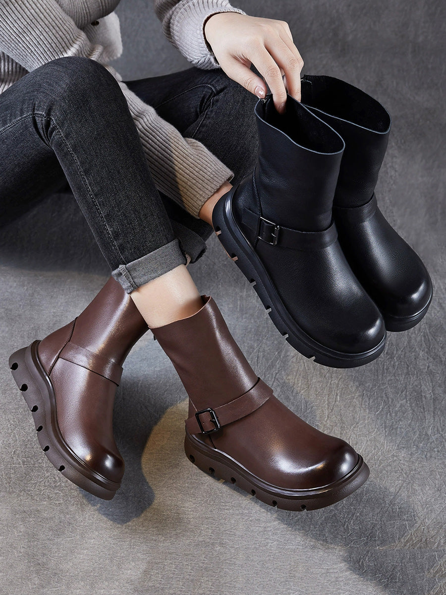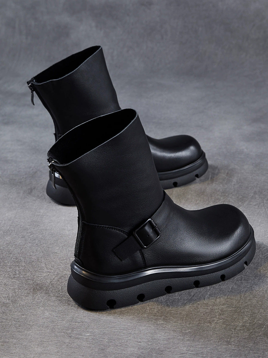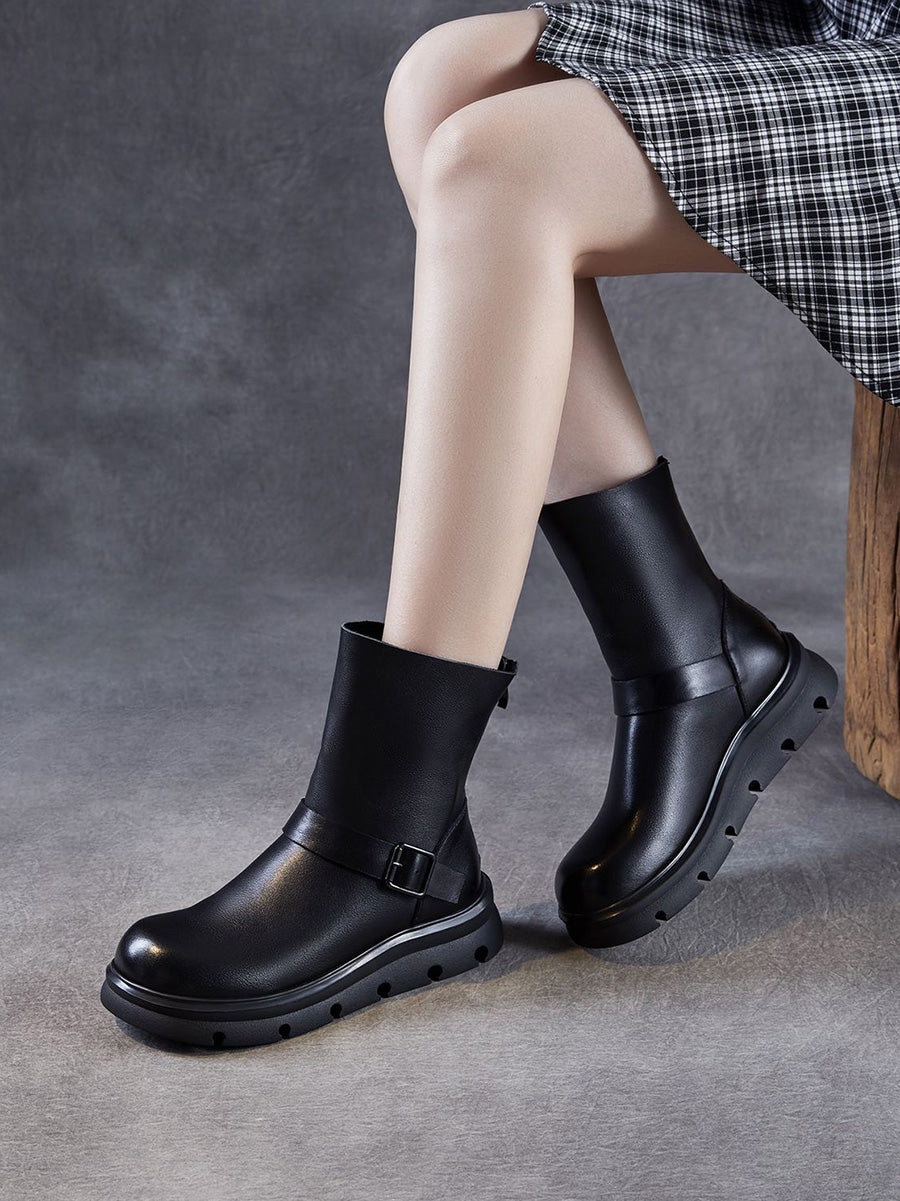 Damskie zimowe, skórzane, do połowy łydki, buty Martin