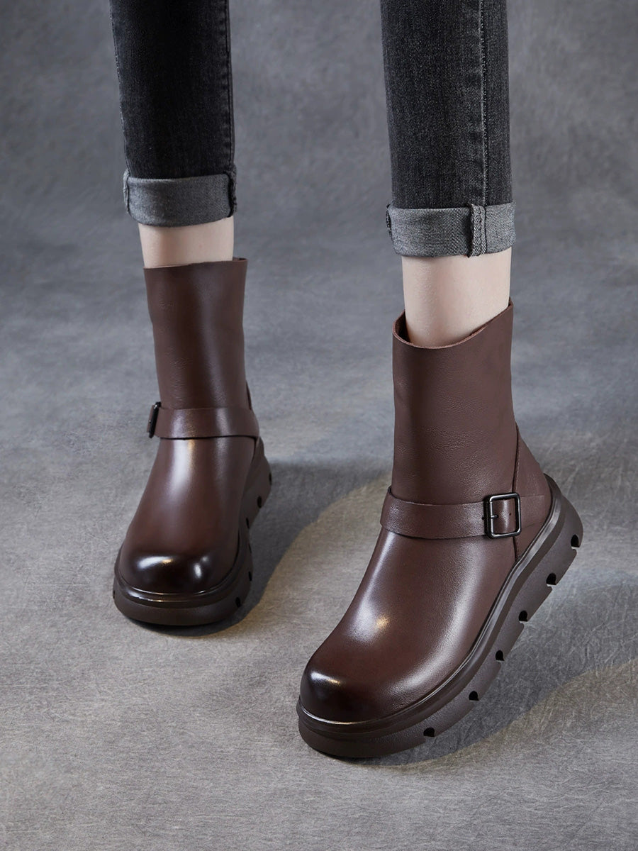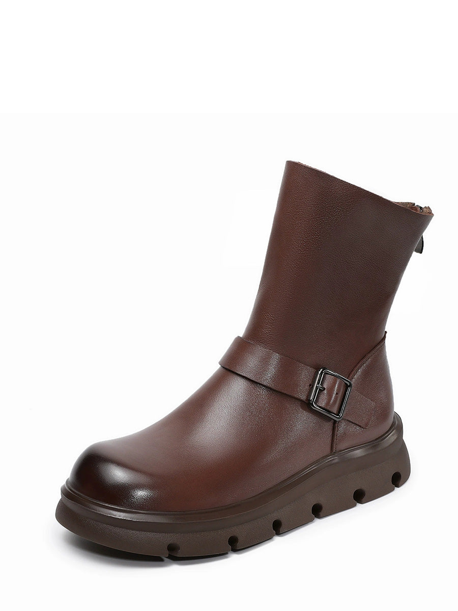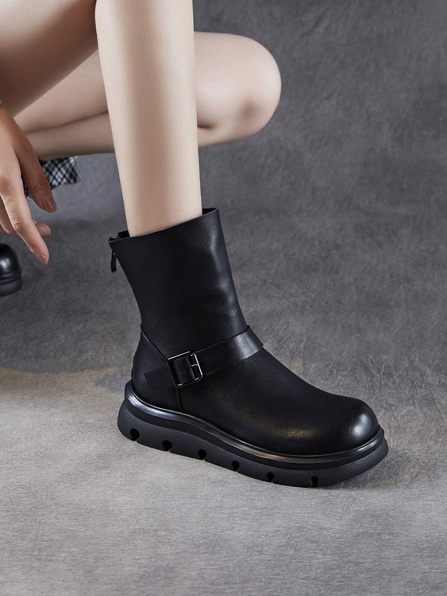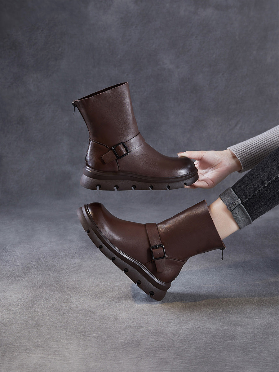 Damskie zimowe, skórzane, do połowy łydki, buty Martin