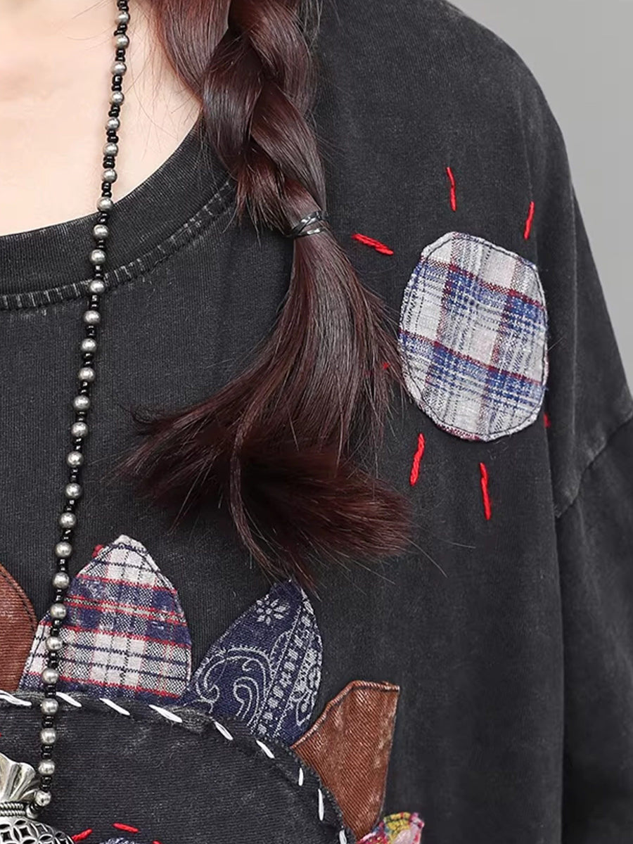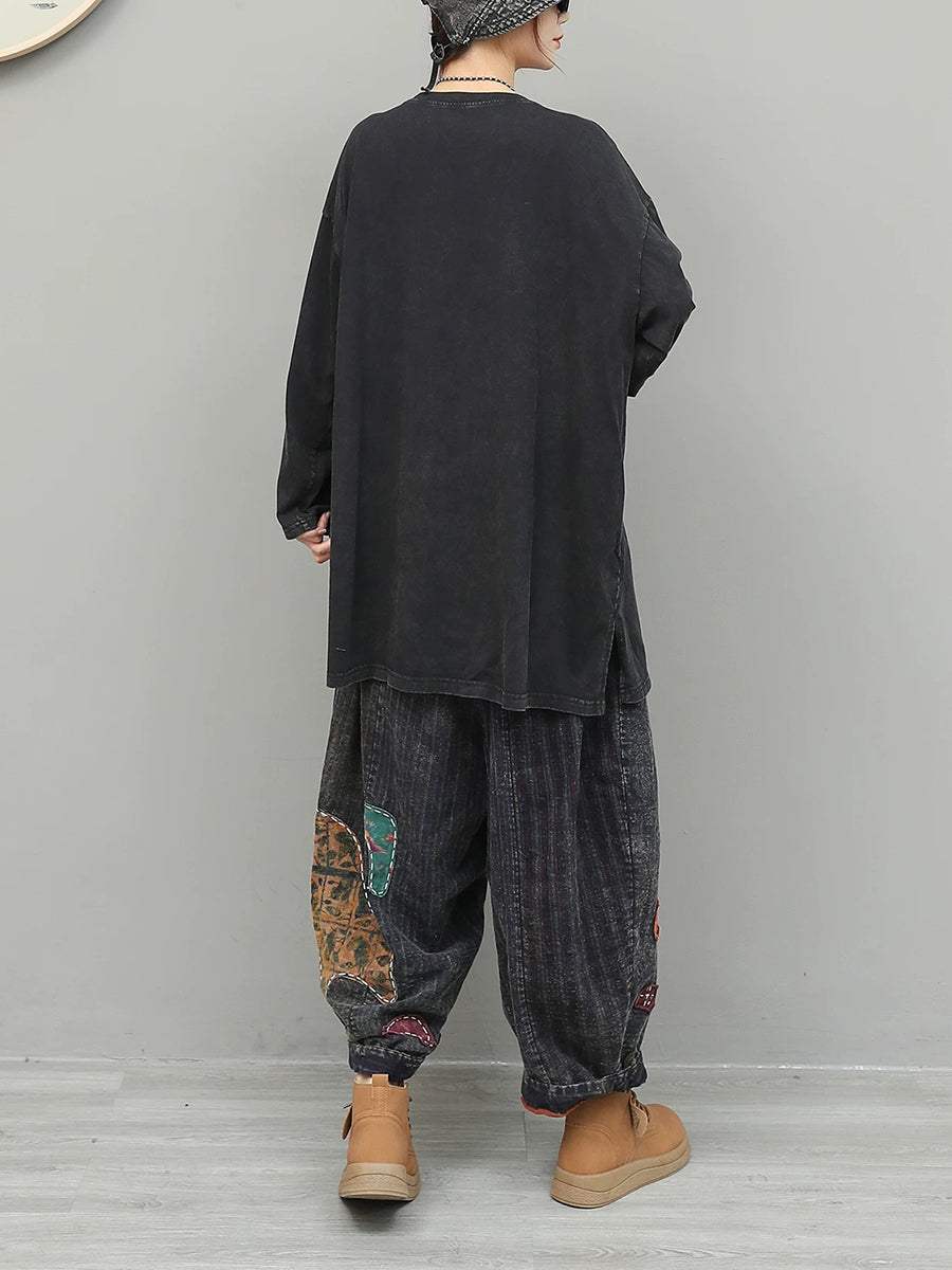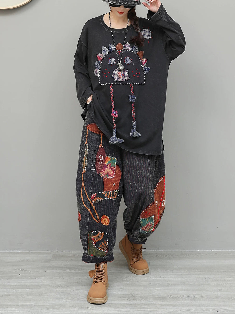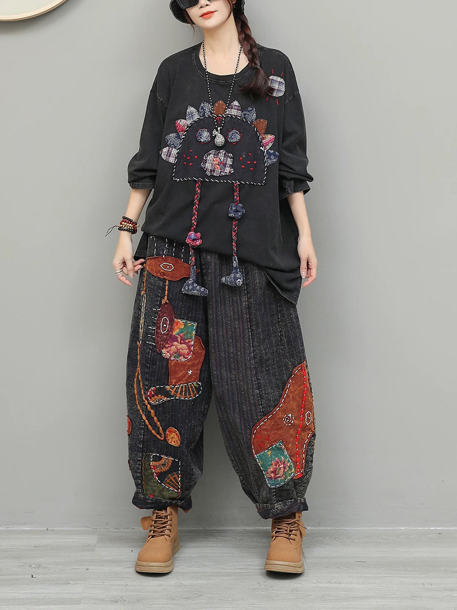 Damskie wiosenne etniczne, patchworkowe garnitury z okrągłym dekoltem