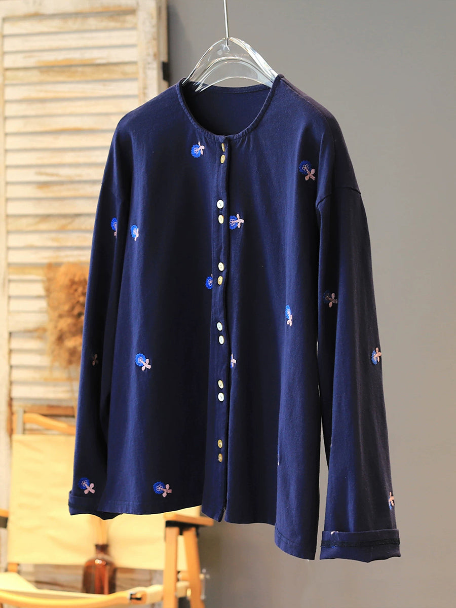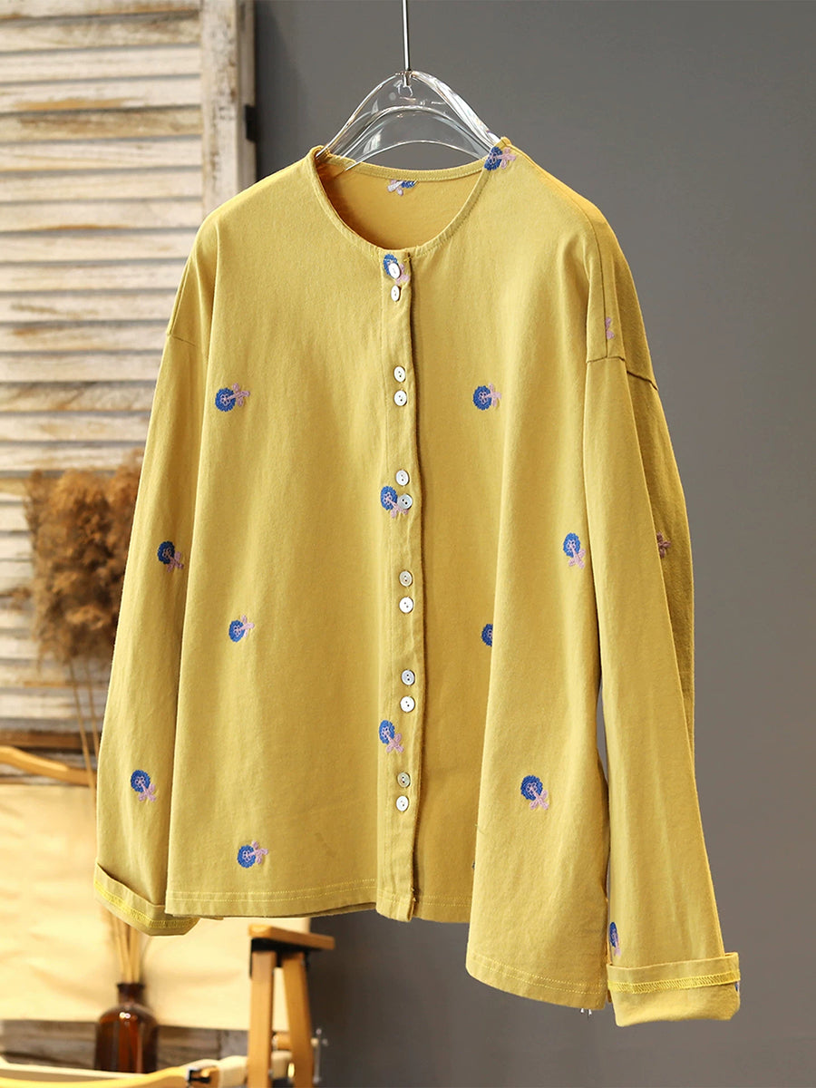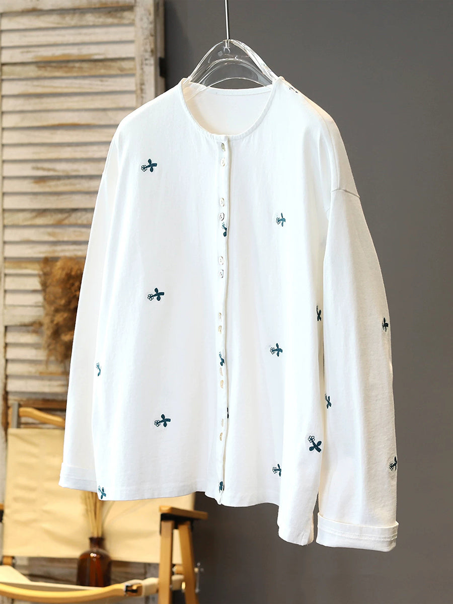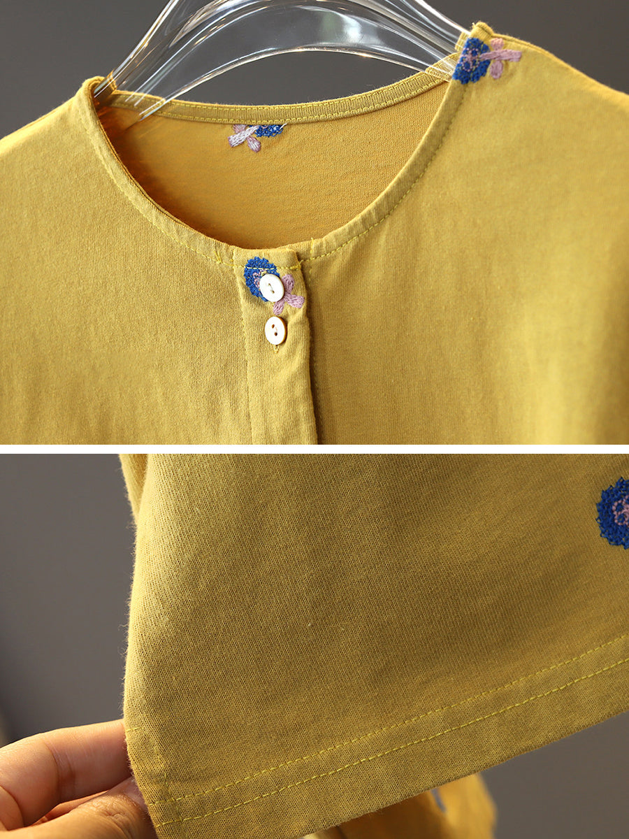 Bluzka damska z okrągłym dekoltem i haftowanymi kwiatami wiosennymi