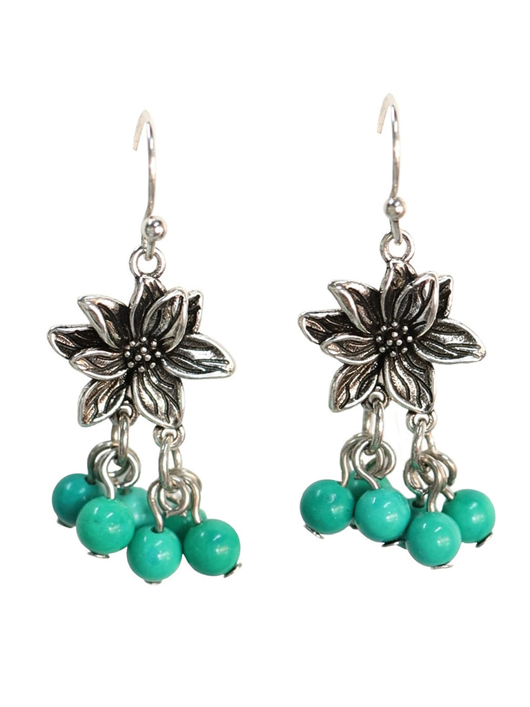Kolczyki damskie etniczne z koralikami z turkusu i lotosu