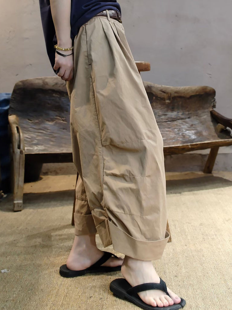 Damskie letnie, swobodne, bawełniane, szerokie spodnie