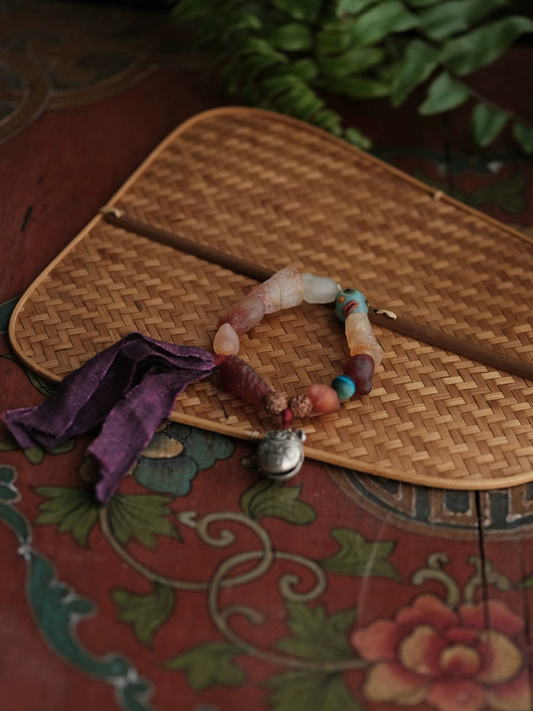 Bransoletka damska z frędzlami i drewnianymi koralikami w stylu etnicznym