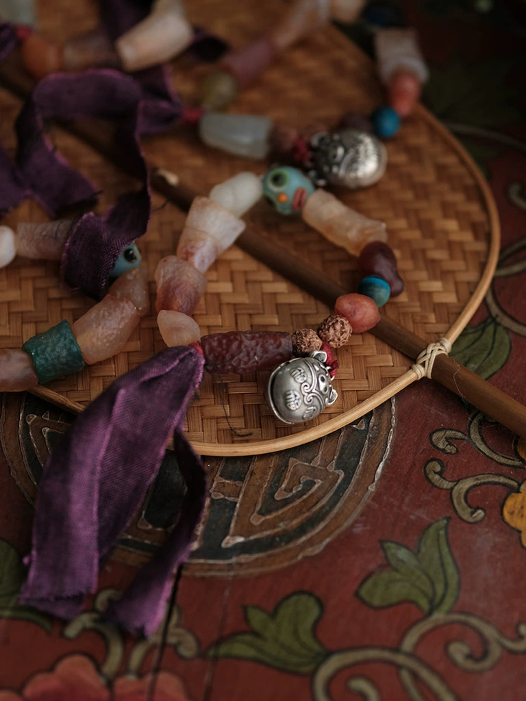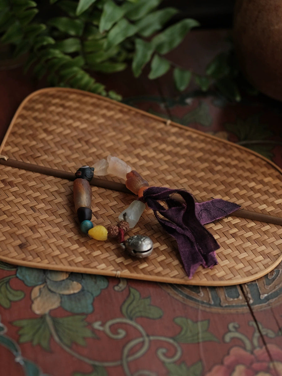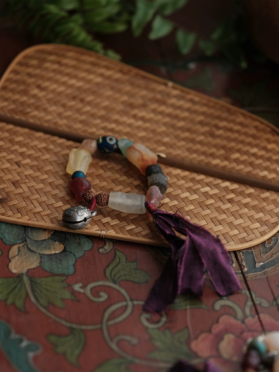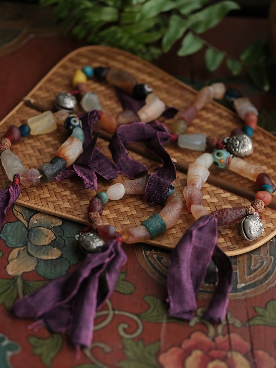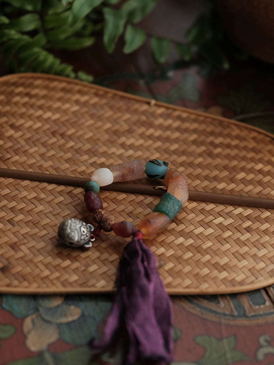 Bransoletka damska z frędzlami i drewnianymi koralikami w stylu etnicznym