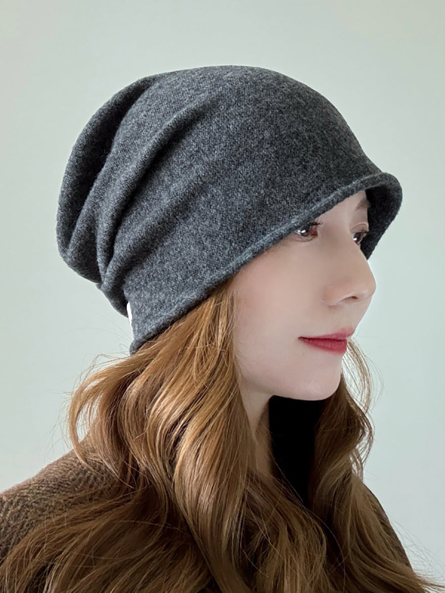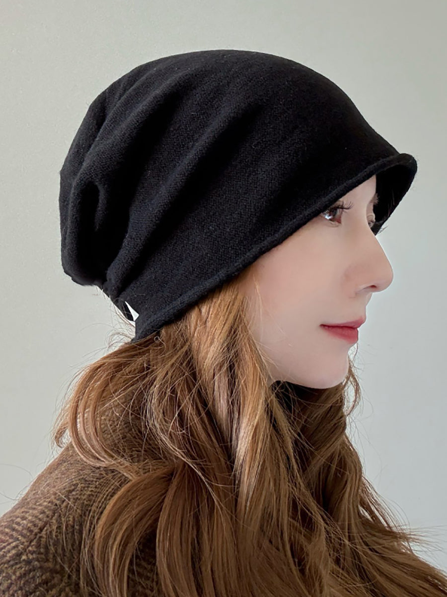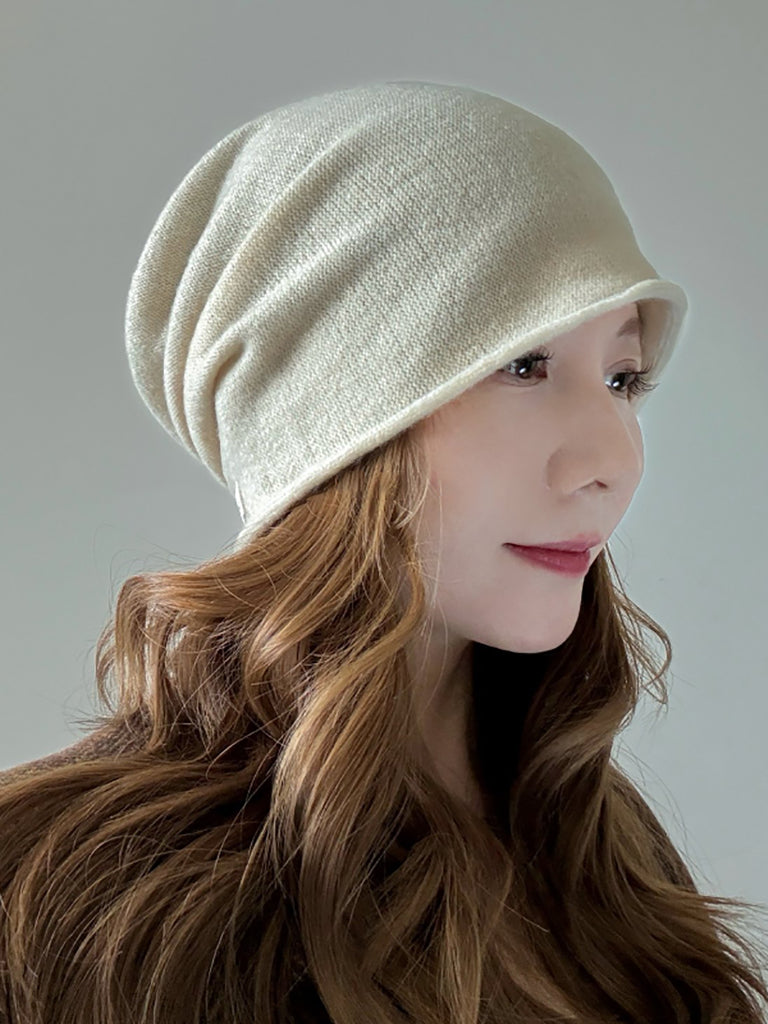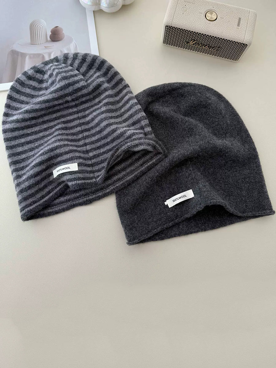 Damska, swobodna, dzianinowa czapka w paski, 100% wełna