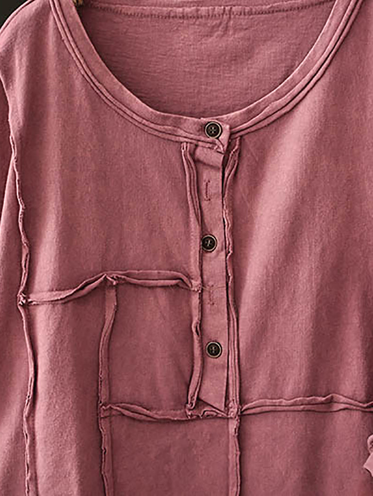 Damska letnia koszula bawełniana w stylu retro z okrągłym dekoltem w jednolitym kolorze