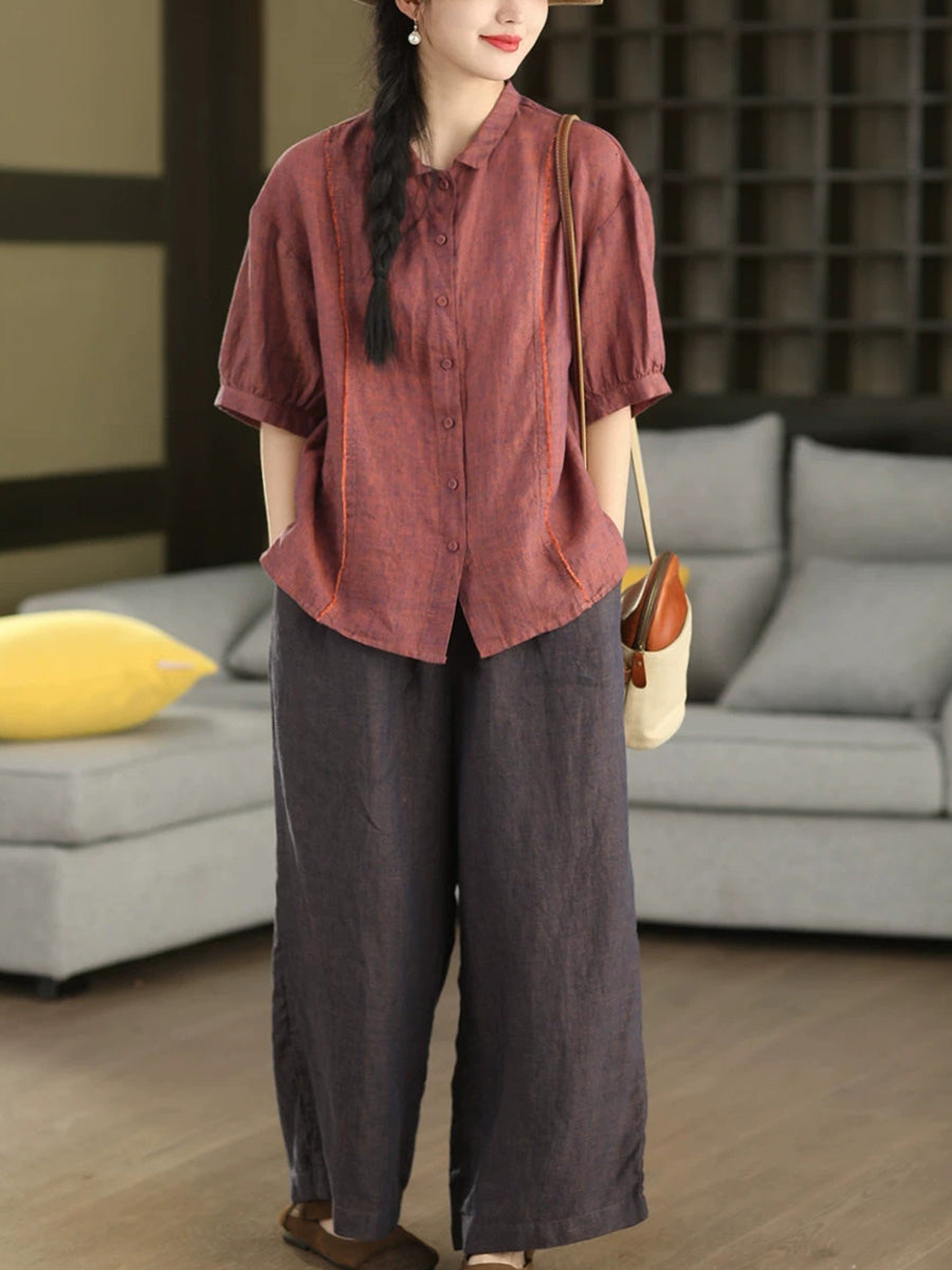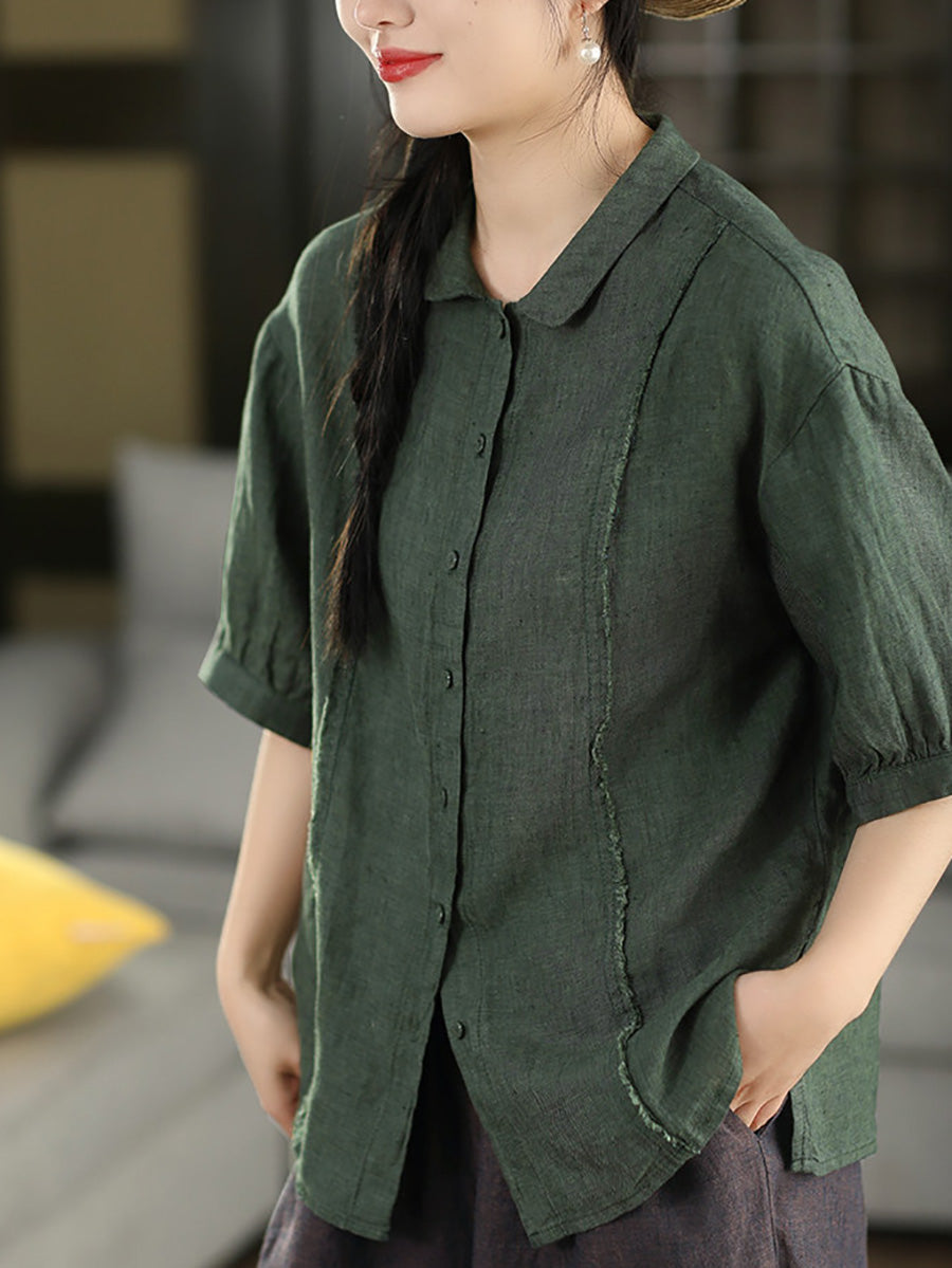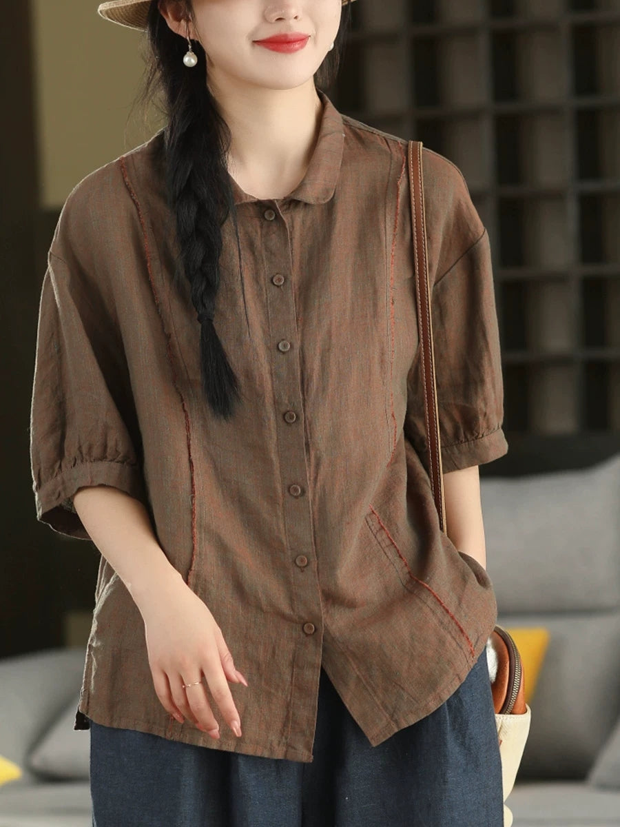 Damska letnia bluzka z lnianego materiału Artsy Spliced 100%