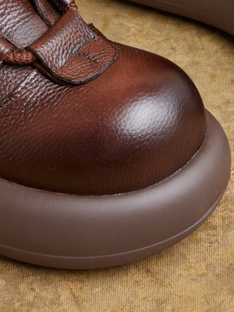 Damskie zimowe botki na platformie z prawdziwej skóry