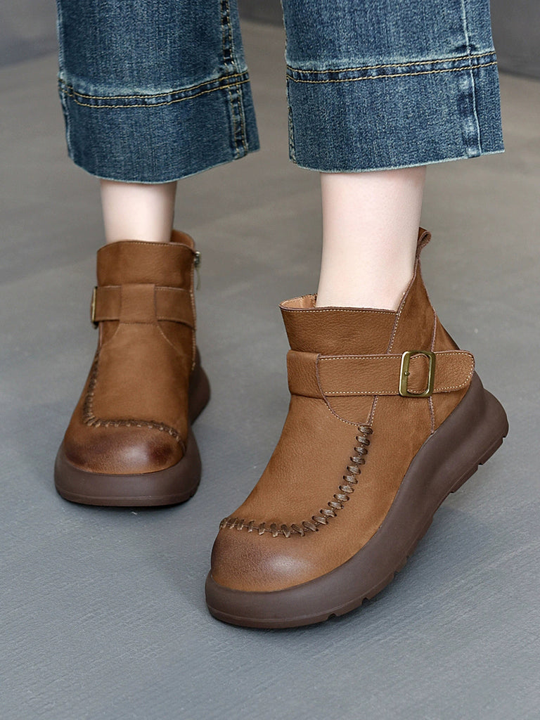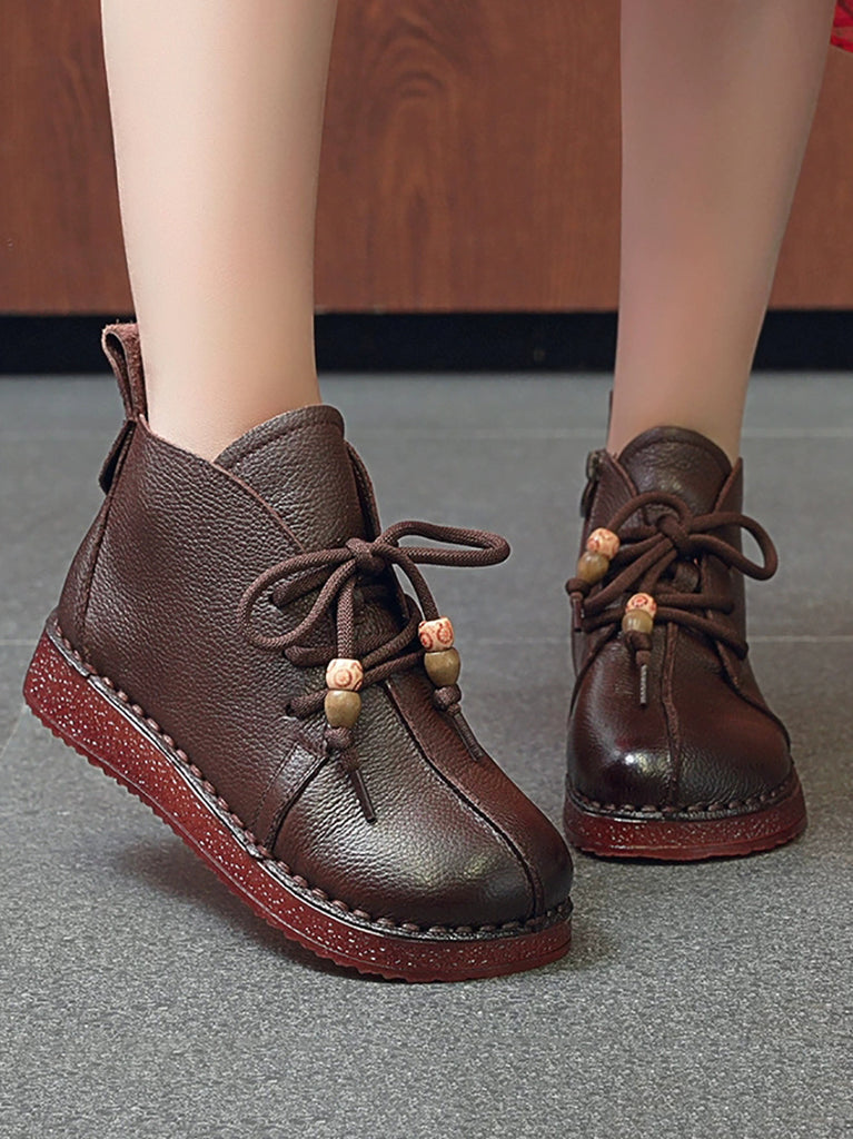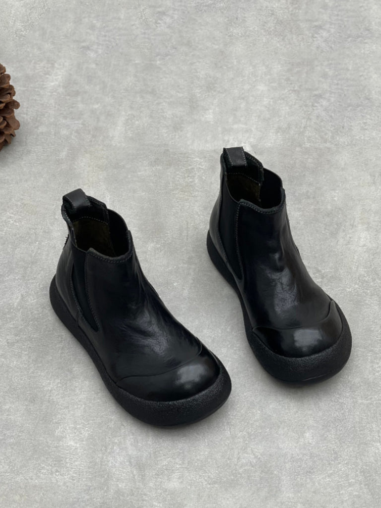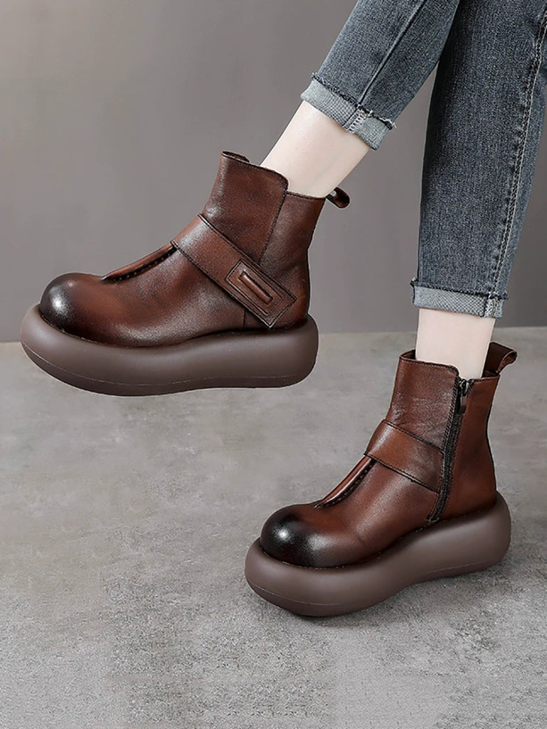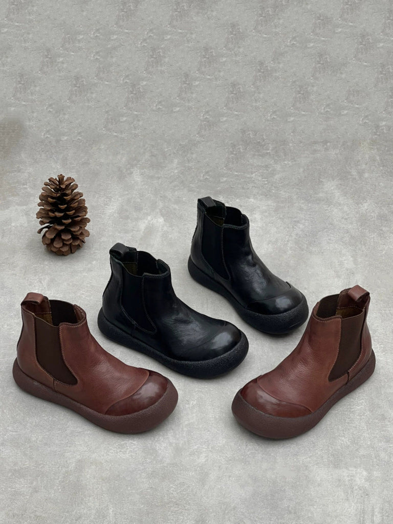 Damskie botki vintage z czystej skóry w jednolitym kolorze