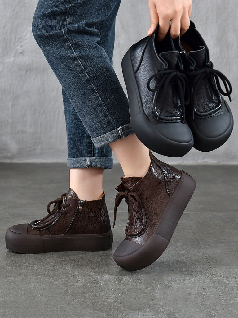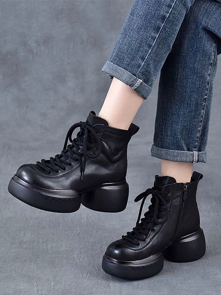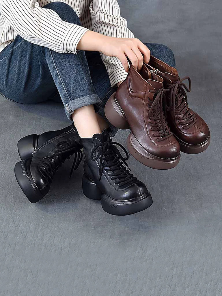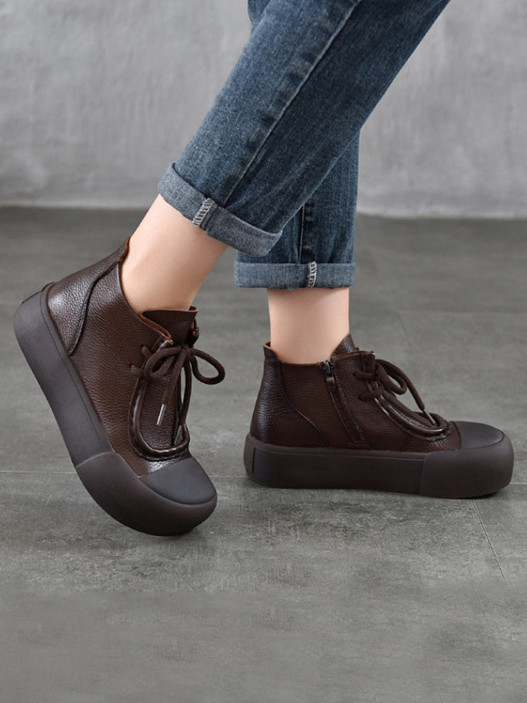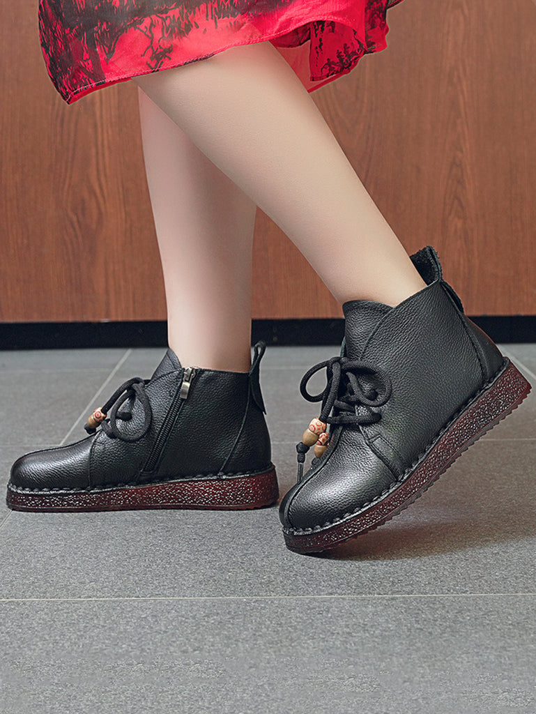 Damskie botki vintage z czystej skóry w jednolitym kolorze