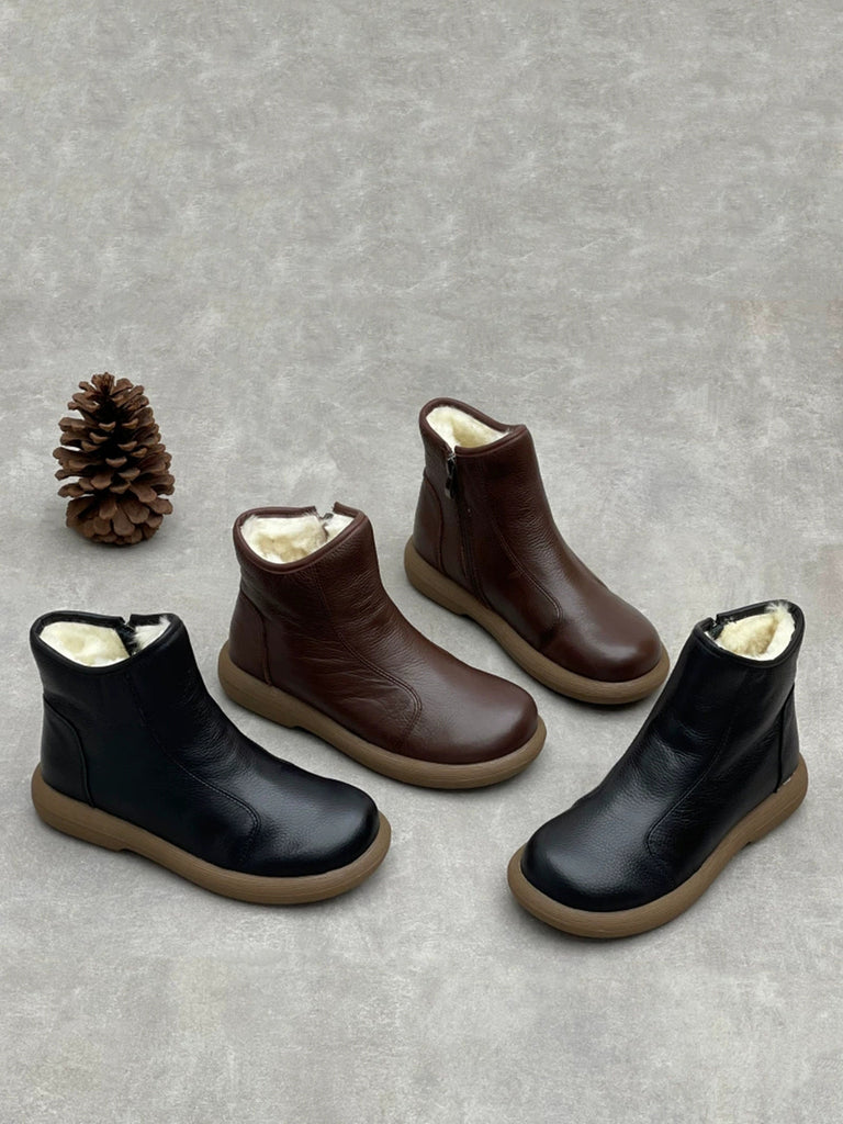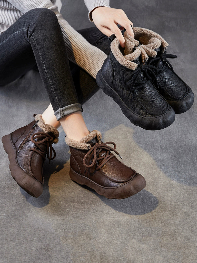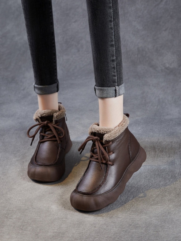 Damskie buty vintage z prawdziwej skóry z podszewką z polaru