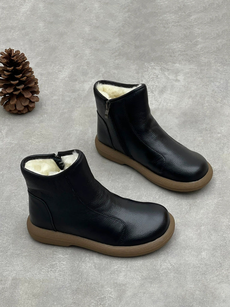 Damskie zimowe botki z prawdziwej skóry z łączonymi szwami