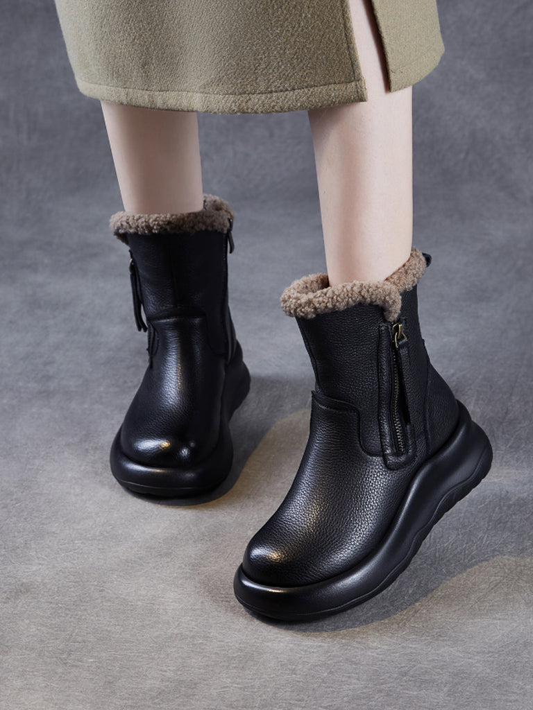 Damskie zimowe botki na platformie z prawdziwej skóry
