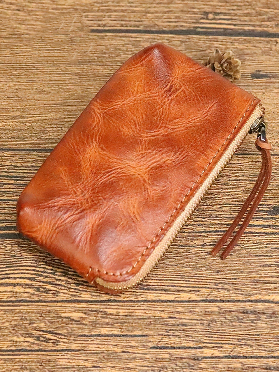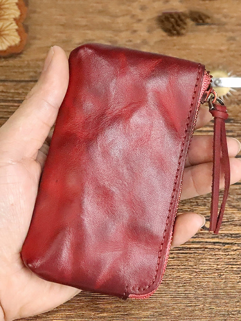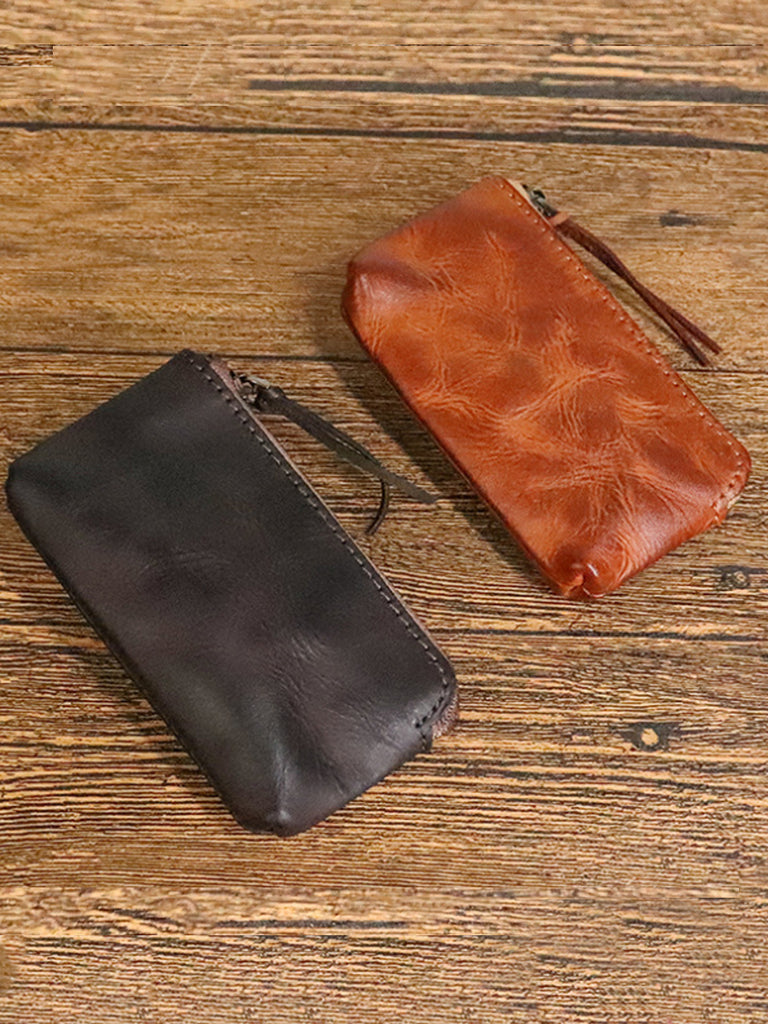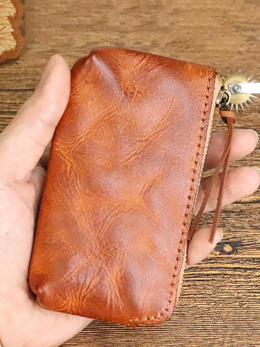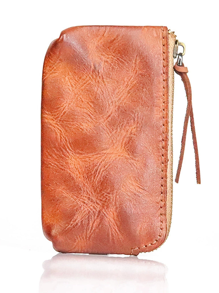 Damski skórzany portfel retro z zamkiem błyskawicznym i wieloma funkcjami