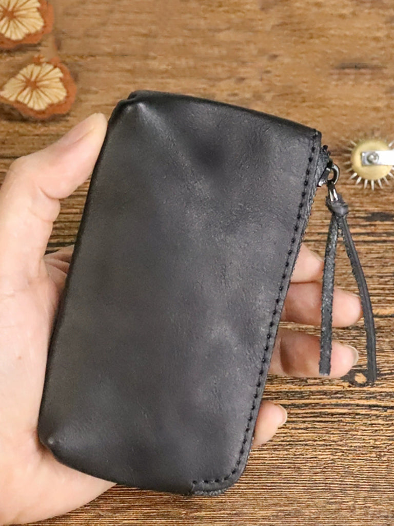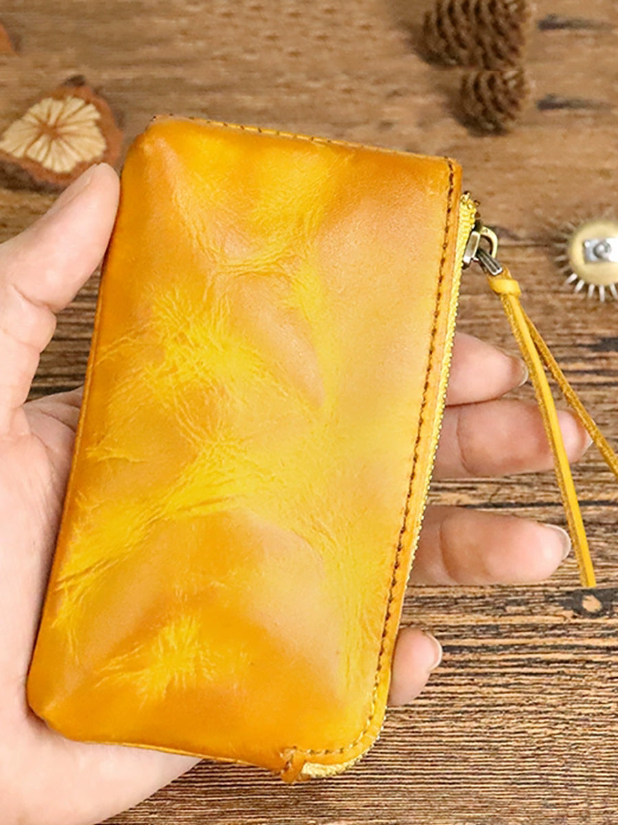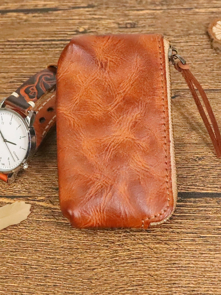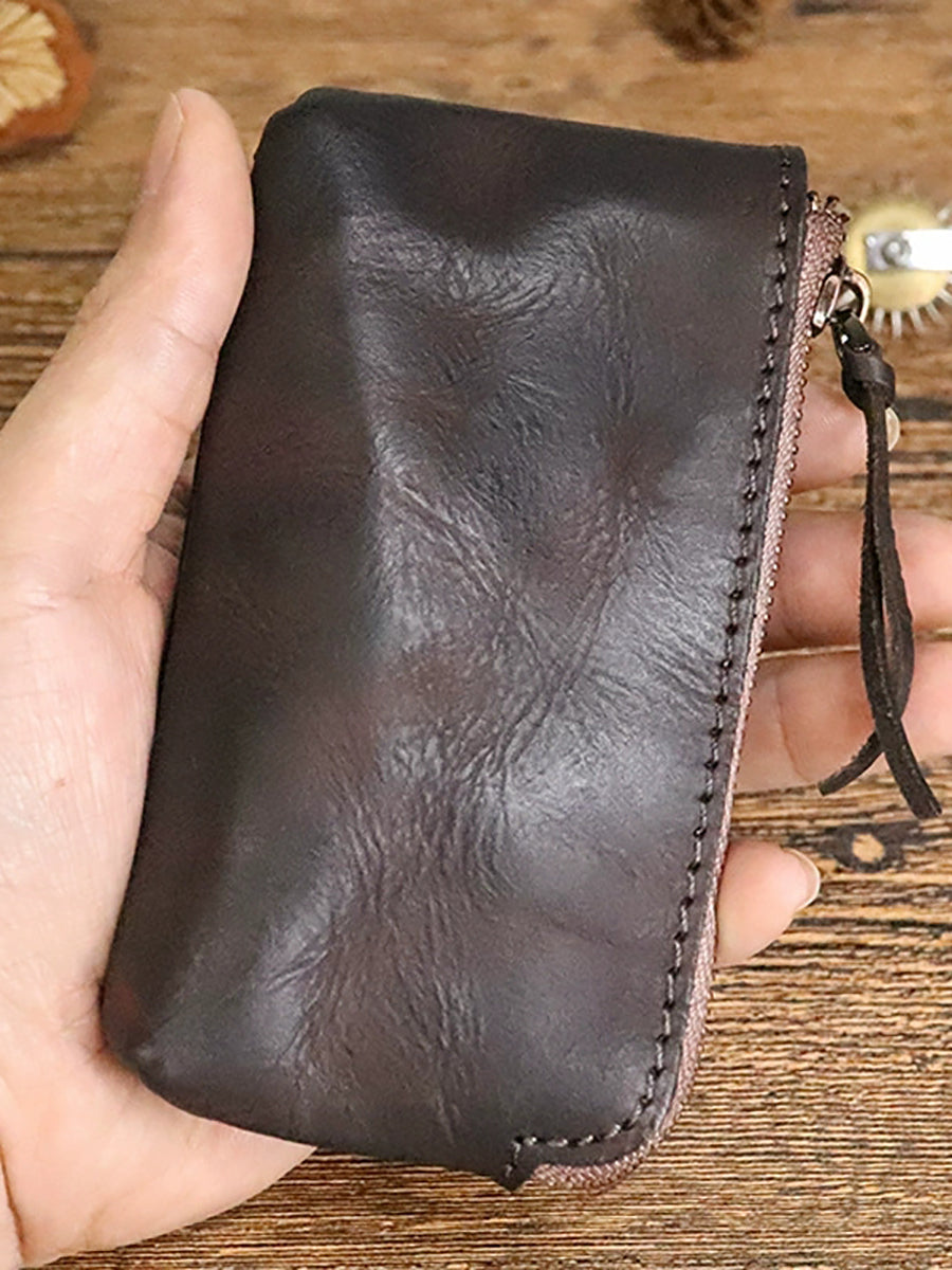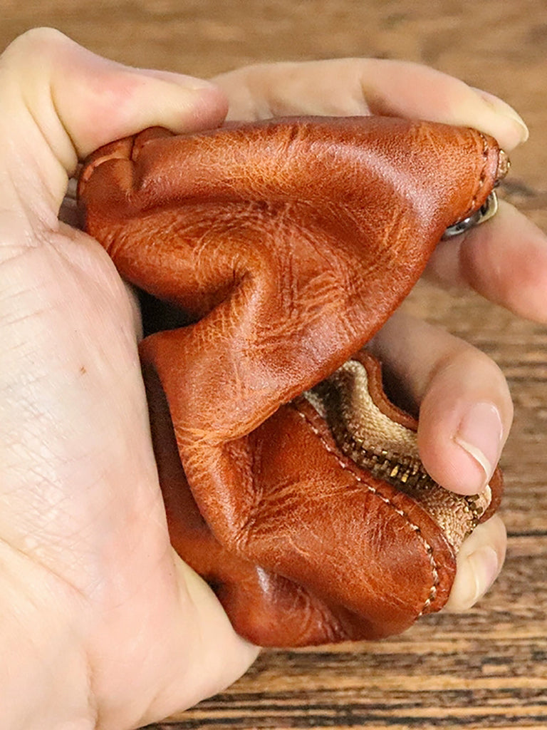 Damski skórzany portfel retro z zamkiem błyskawicznym i wieloma funkcjami