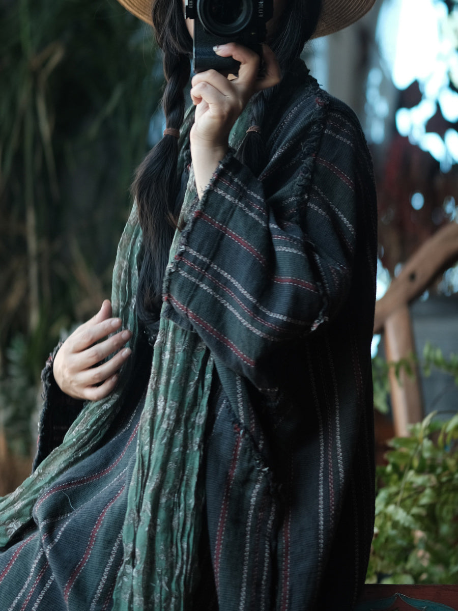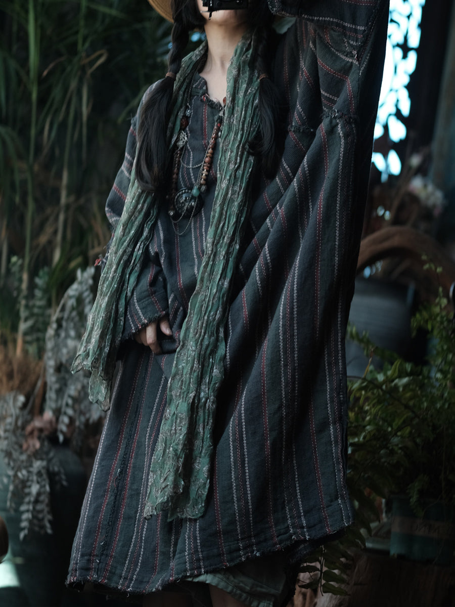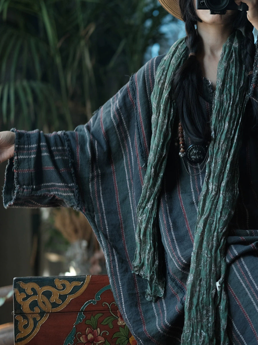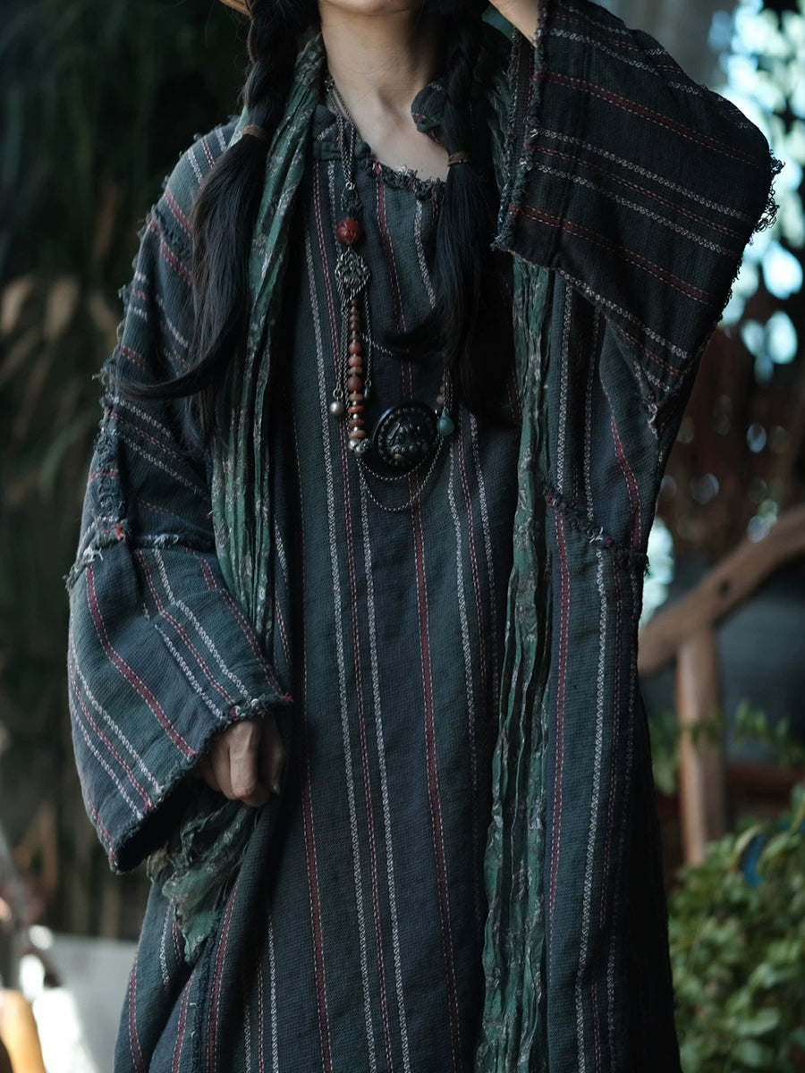 Jesienna sukienka damska w paski w stylu retro z okrągłym dekoltem