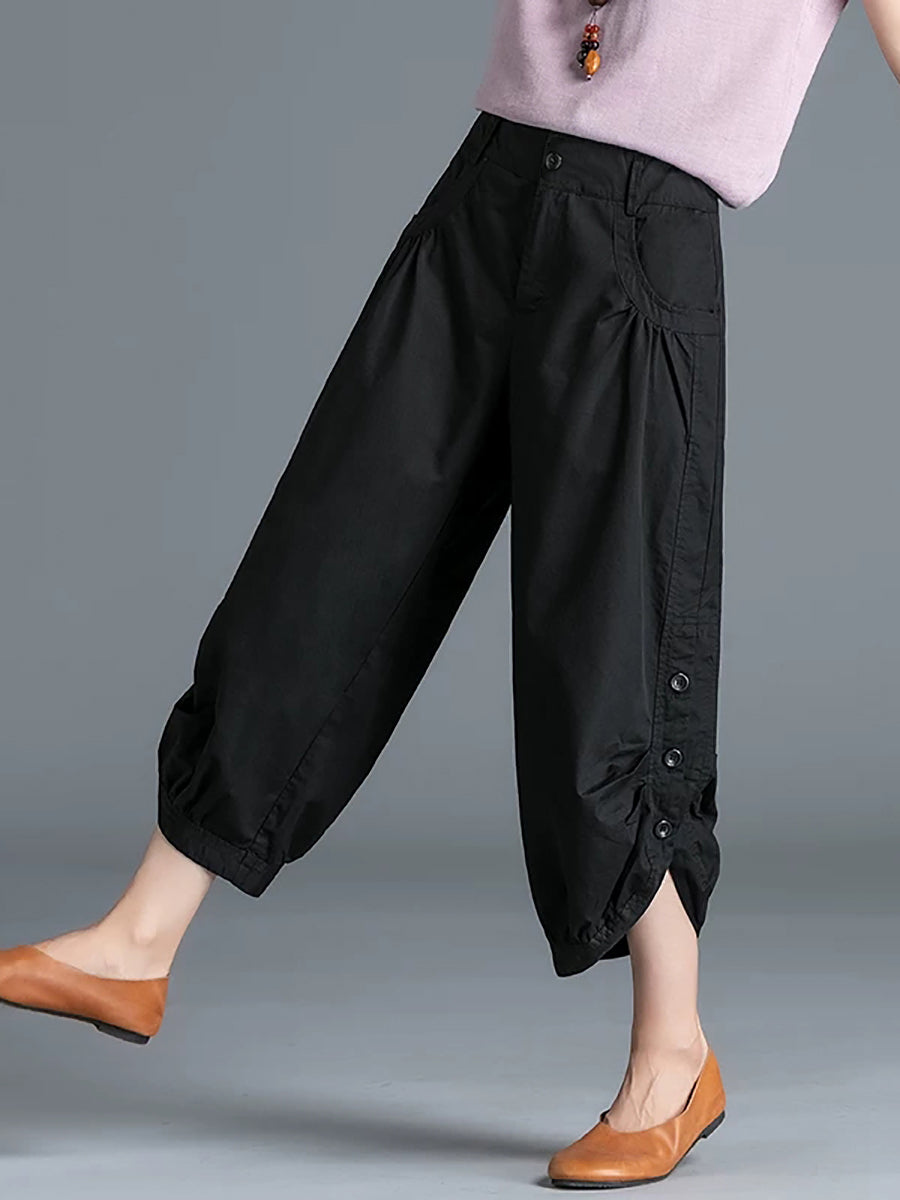 Damskie letnie spodnie capri w czystym kolorze, 100% bawełny