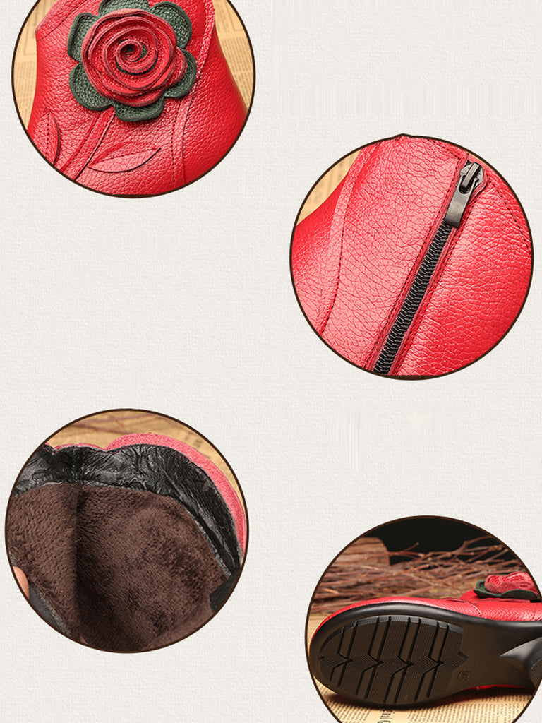 Damskie jesienne, artystyczne, kwiatowe, skórzane, łączone buty na średnim obcasie