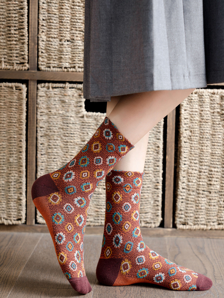 5 par skarpetek bawełnianych z motywem kwiatowym, przeznaczonych dla kobiet, na średni obcas